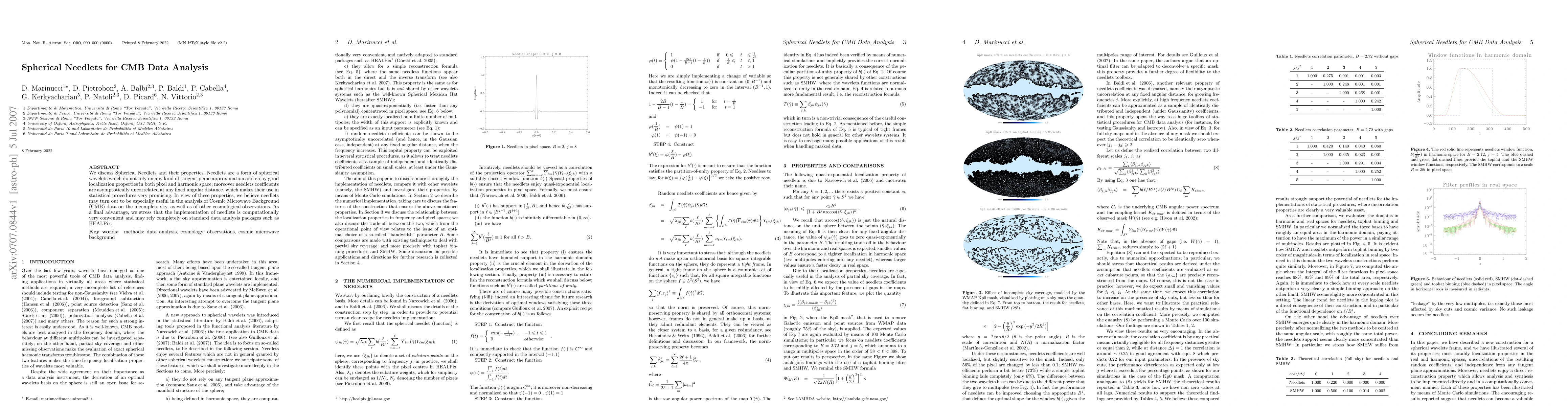 This paper introduces spherical needlets, a type of spherical wavelet offering superior localization in both pixel and harmonic space, and demonstrating asymptotic uncorrelatedness in statistical procedures. These properties make needlets particularly useful for analyzing incomplete Cosmic Microwave Background (CMB) data and other cosmological observations, with ease of implementation via standard data analysis tools.