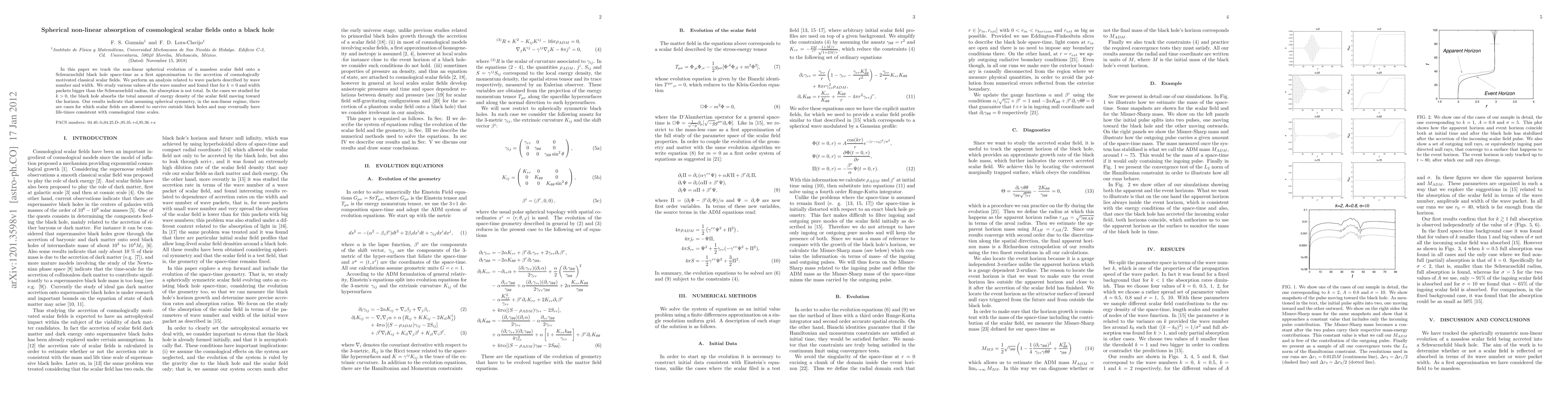 In this paper we track the non-linear spherical evolution of a massless scalar field onto a Schwarzschild black hole space-time as a first approximation to the accretion of cosmologically motivated classical scalar fields. We perform an analysis related to wave packets described by wave number and width. We study various values of the wave number k, and found that for k = 0 and width packets bigger than the Schwarzschild radius, the absorption is not total. In the cases we studied for k > 0, the black hole absorbs the total amount of energy density of the scalar field moving toward the horizon. Our results indicate that assuming spherical symmetry, in the non-linear regime, there are cases for which scalar fields are allowed to survive outside black holes and may eventually have life-times consistent with cosmological time scales.
