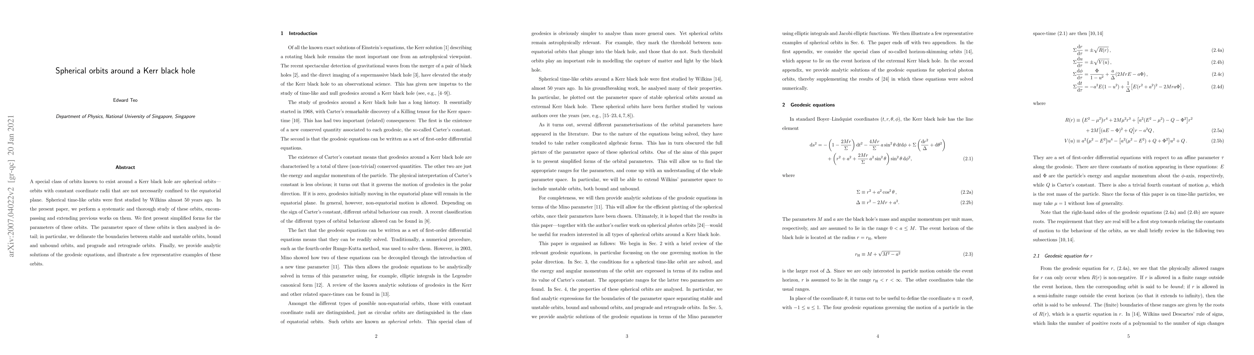 This paper systematically studies spherical orbits around a Kerr black hole, presenting simplified parameters and analyzing their stability, confinement, and direction. It delineates boundaries between stable, unstable, bound, and unbound orbits, and provides analytic solutions to the geodesic equations with examples.