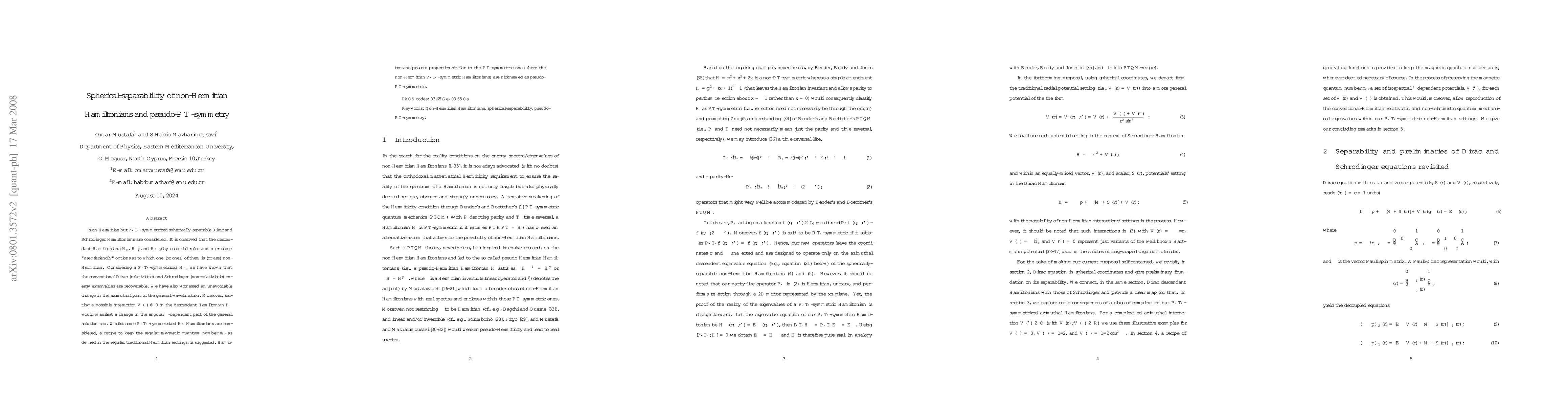 This paper explores non-Hermitian Hamiltonians that are P(phi)T(phi)-symmetrized and spherically-separable, demonstrating that the descendant Hamiltonians H(r), H(theta), and H(phi) can be individually non-Hermitian, allowing for recoverable conventional Dirac and Schrödinger energy eigenvalues. The study also introduces the concept of pseudo-PT-symmetry for these Hamiltonians, suggesting a method to maintain the regular magnetic quantum number m while observing changes in the wavefunction's azimuthal and angular components.