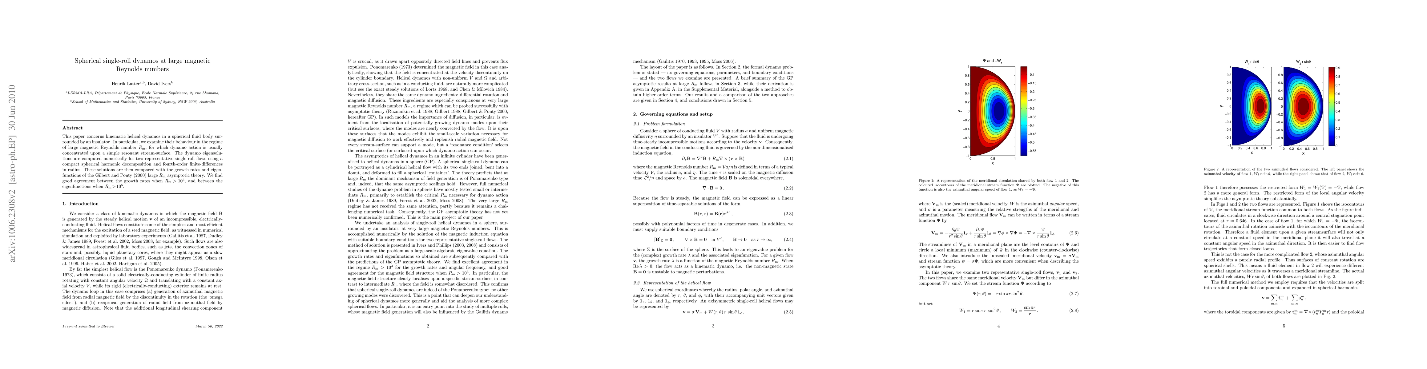 Researchers studied the behavior of spherical dynamos at large magnetic Reynolds numbers, finding good agreement between numerical simulations and theoretical predictions for high-Reynolds number regimes.