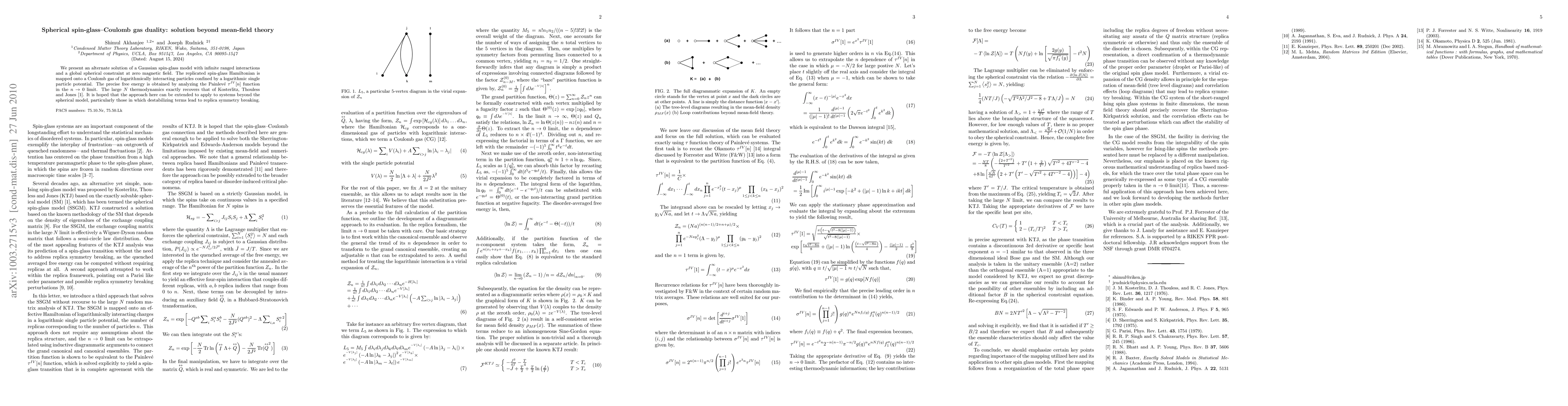 Researchers present an alternate solution to a complex spin-glass model using a Coulomb gas duality approach, exactly recovering known thermodynamic results in the large N limit.