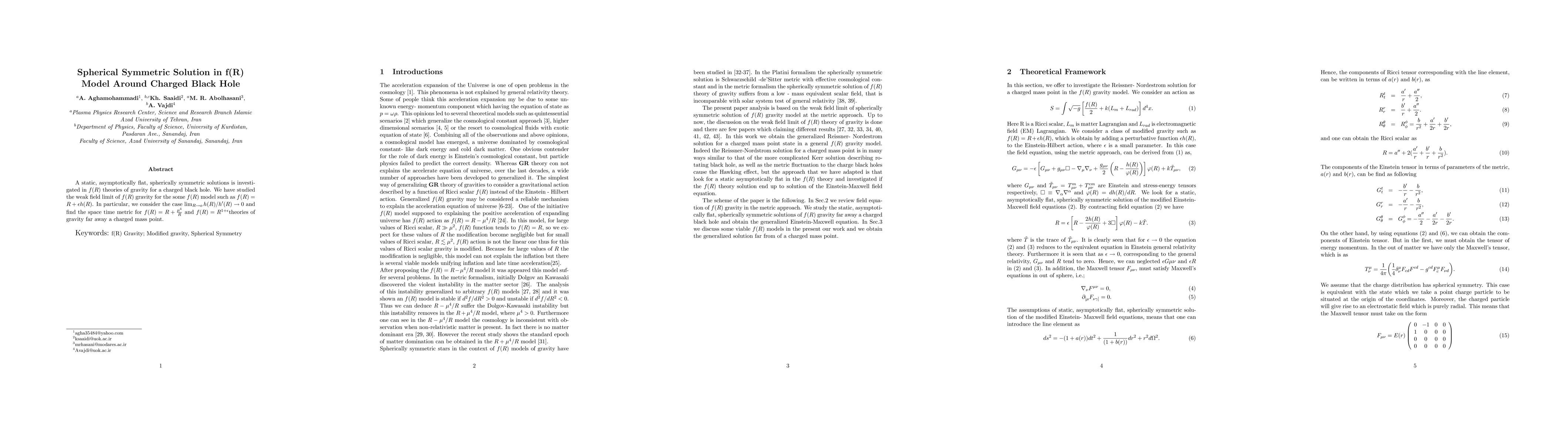 Researchers investigate spherically symmetric solutions in f(R) models of gravity around charged black holes, finding new insights into the space-time metric for certain theories.