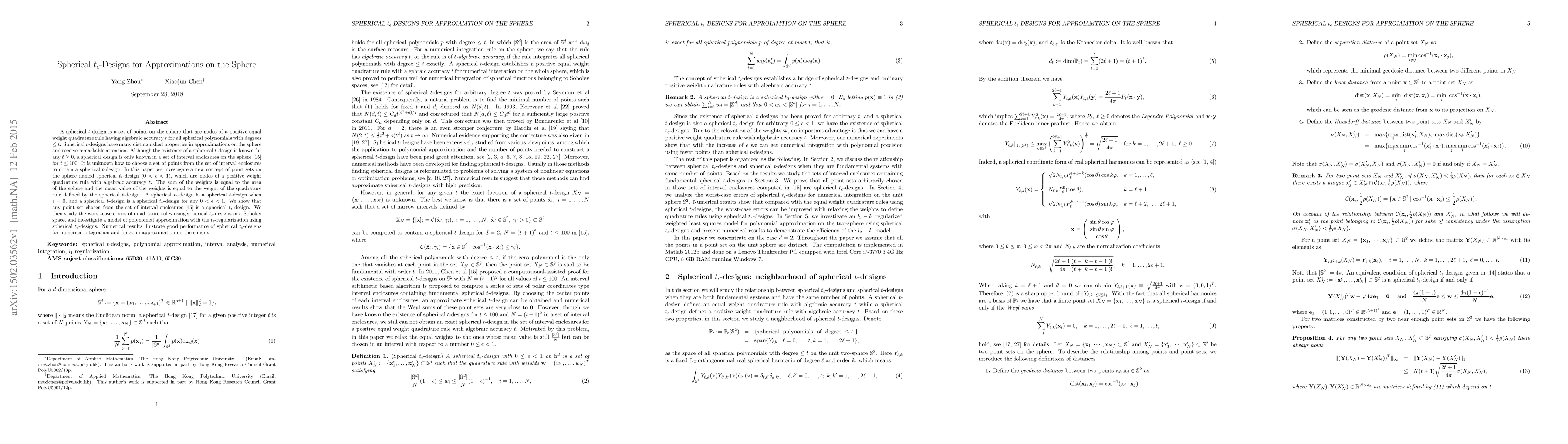 Researchers introduce spherical $t_ heta$-designs for approximations on the sphere, which generalize spherical designs to any $ heta eq 0$, offering a new framework for efficient numerical integration and function approximation.