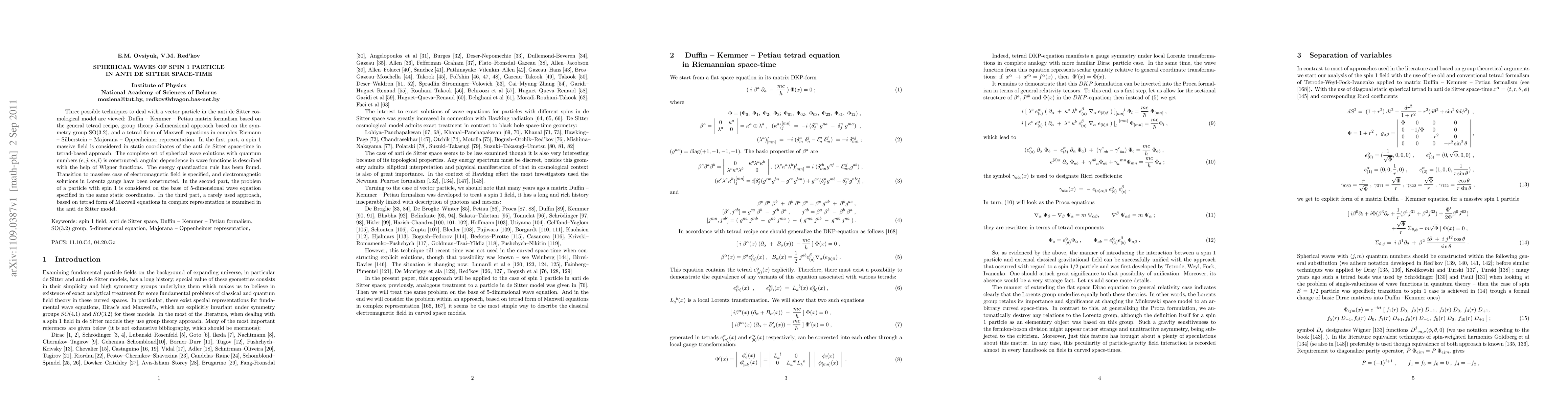 This paper explores three techniques to analyze spin 1 particles in anti de Sitter space-time: the Duffin-Kemmer-Petiau matrix formalism, a group theory 5-dimensional approach, and a tetrad form of Maxwell equations. It constructs spherical wave solutions for massive spin 1 fields and examines the transition to massless electromagnetic fields.