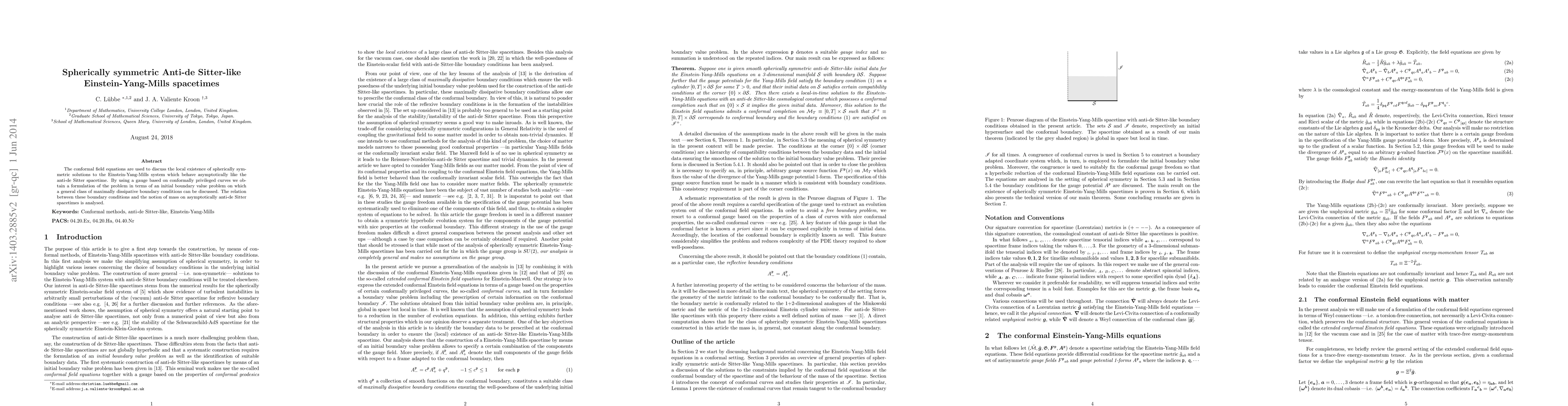 This paper explores the local existence of spherically symmetric solutions to the Einstein-Yang-Mills equations that asymptotically resemble anti-de Sitter spacetime, employing conformal field equations and maximally dissipative boundary conditions to analyze their mass-like properties.