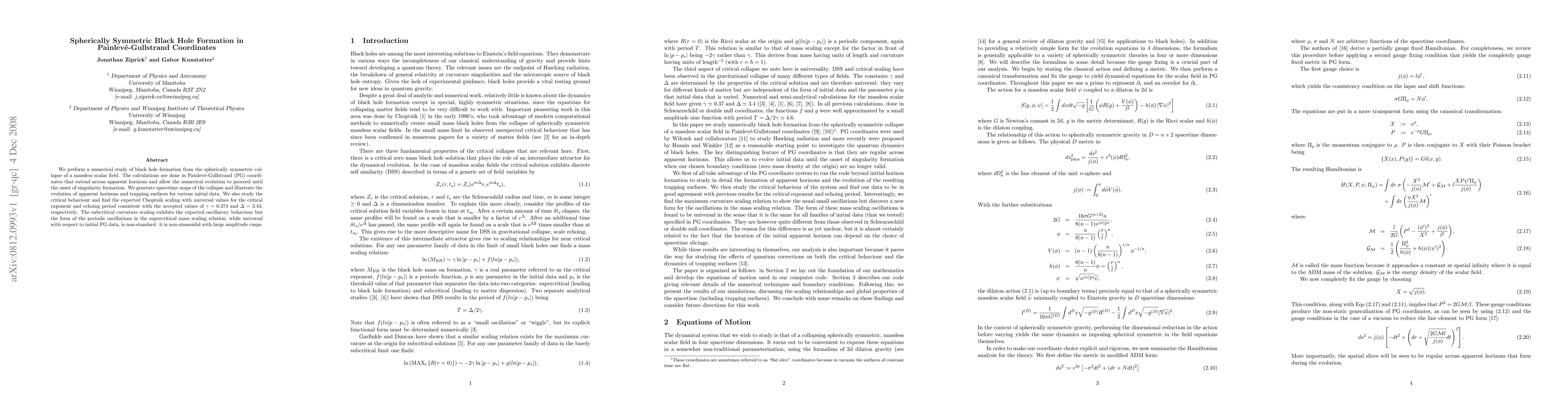 This paper numerically investigates black hole formation from spherically symmetric collapse using Painlevé-Gullstrand coordinates, revealing the evolution of apparent horizons and trapping surfaces. It finds universal critical behavior with Choptuik scaling, but notes a non-standard, non-sinusoidal oscillatory pattern in the supercritical mass scaling relation.