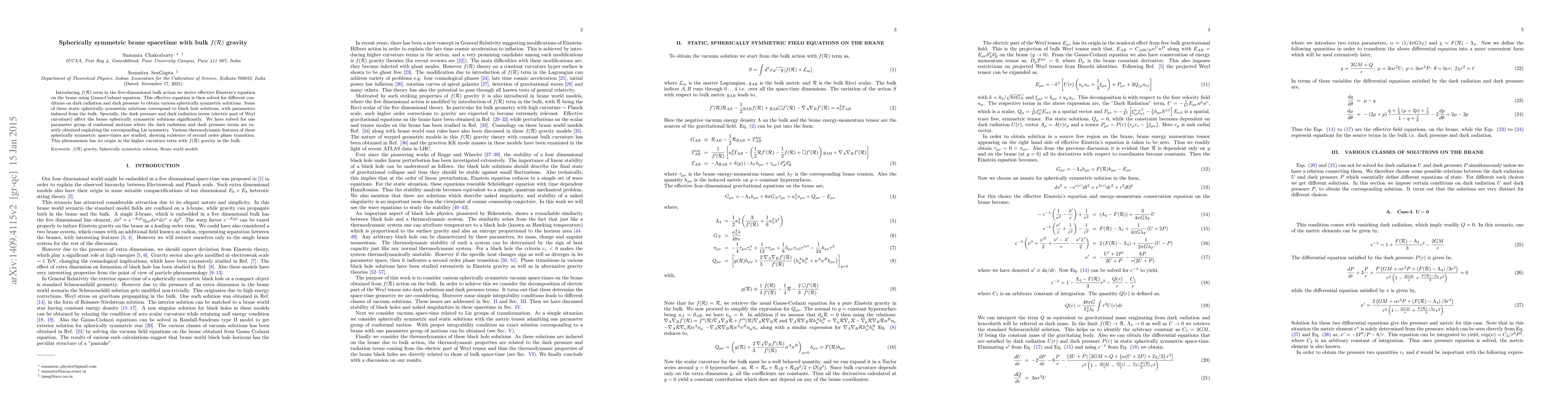 Introducing $f(\mathcal{R})$ term in the five-dimensional bulk action we derive effective Einstein's equation on the brane using Gauss-Codazzi equation. This effective equation is then solved for different conditions on dark radiation and dark pressure to obtain various spherically symmetric solutions. Some of these static spherically symmetric solutions correspond to black hole solutions, with parameters induced from the bulk. Specially, the dark pressure and dark radiation terms (electric part of Weyl curvature) affect the brane spherically symmetric solutions significantly. We have solved for one parameter group of conformal motions where the dark radiation and dark pressure terms are exactly obtained exploiting the corresponding Lie symmetry. Various thermodynamic features of these spherically symmetric space-times are studied, showing existence of second order phase transition. This phenomenon has its origin in the higher curvature term with $f(\mathcal{R})$ gravity in the bulk.