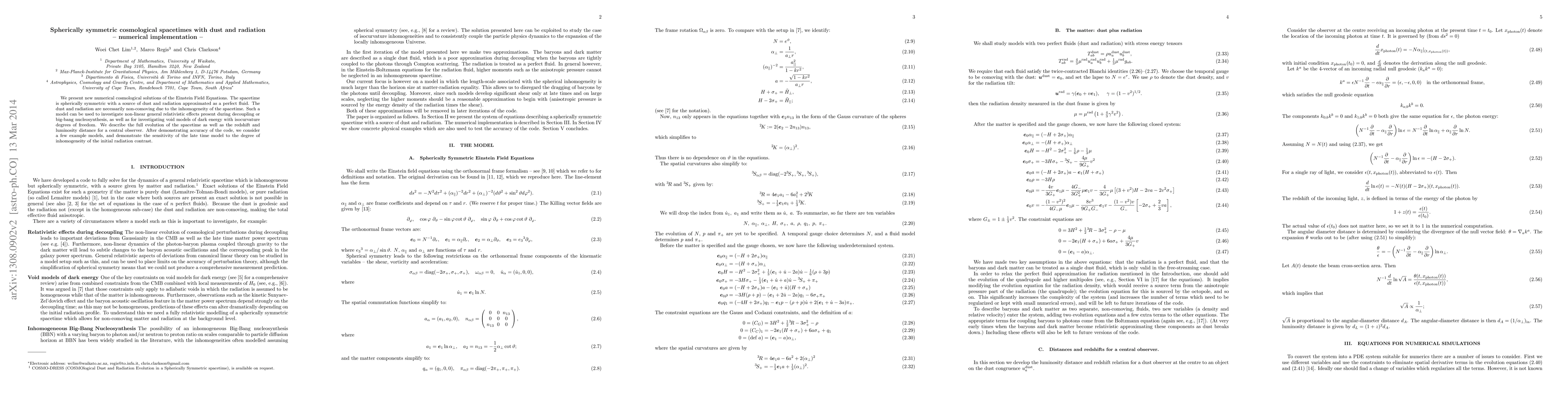 We present new numerical cosmological solutions of the Einstein Field Equations. The spacetime is spherically symmetric with a source of dust and radiation approximated as a perfect fluid. The dust and radiation are necessarily non-comoving due to the inhomogeneity of the spacetime. Such a model can be used to investigate non-linear general relativistic effects present during decoupling or big-bang nucleosynthesis, as well as for investigating void models of dark energy with isocurvature degrees of freedom. We describe the full evolution of the spacetime as well as the redshift and luminosity distance for a central observer. After demonstrating accuracy of the code, we consider a few example models, and demonstrate the sensitivity of the late time model to the degree of inhomogeneity of the initial radiation contrast.