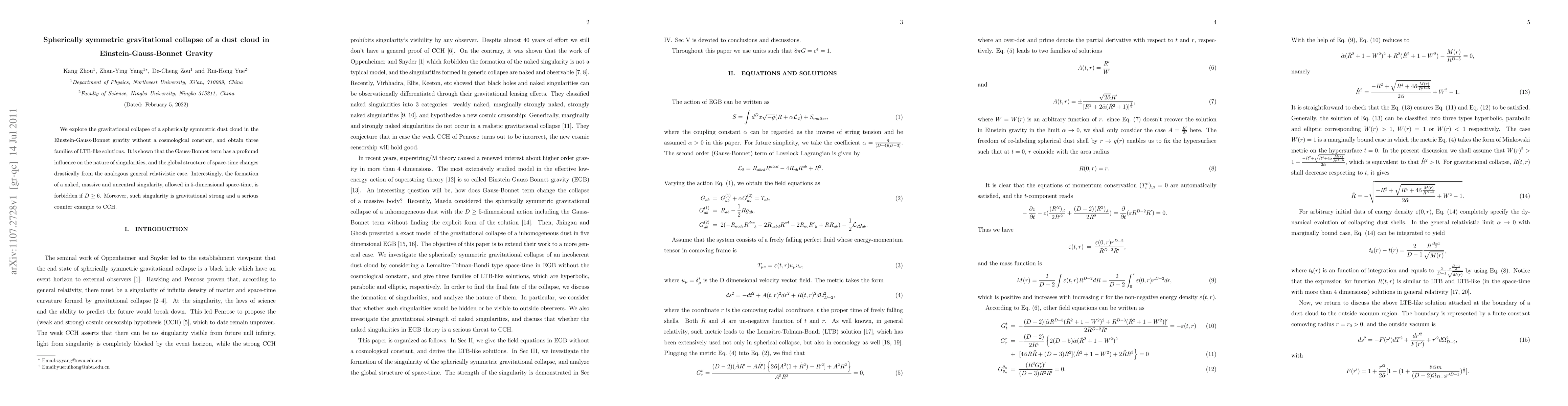 The paper presents new LTB-like solutions for spherically symmetric gravitational collapse in Einstein-Gauss-Bonnet gravity, highlighting the impact of the Gauss-Bonnet term on singularity nature and spacetime structure.