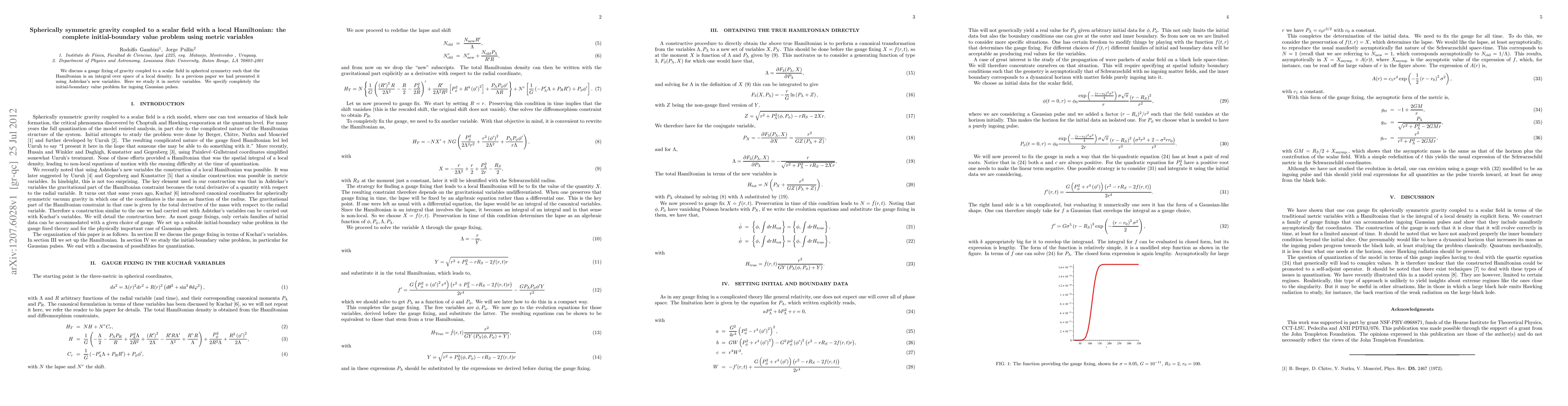 We discuss a gauge fixing of gravity coupled to a scalar field in spherical symmetry such that the Hamiltonian is an integral over space of a local density. In a previous paper we had presented it using Ashtekar's new variables. Here we study it in metric variables. We specify completely the initial-boundary value problem for ingoing Gaussian pulses.