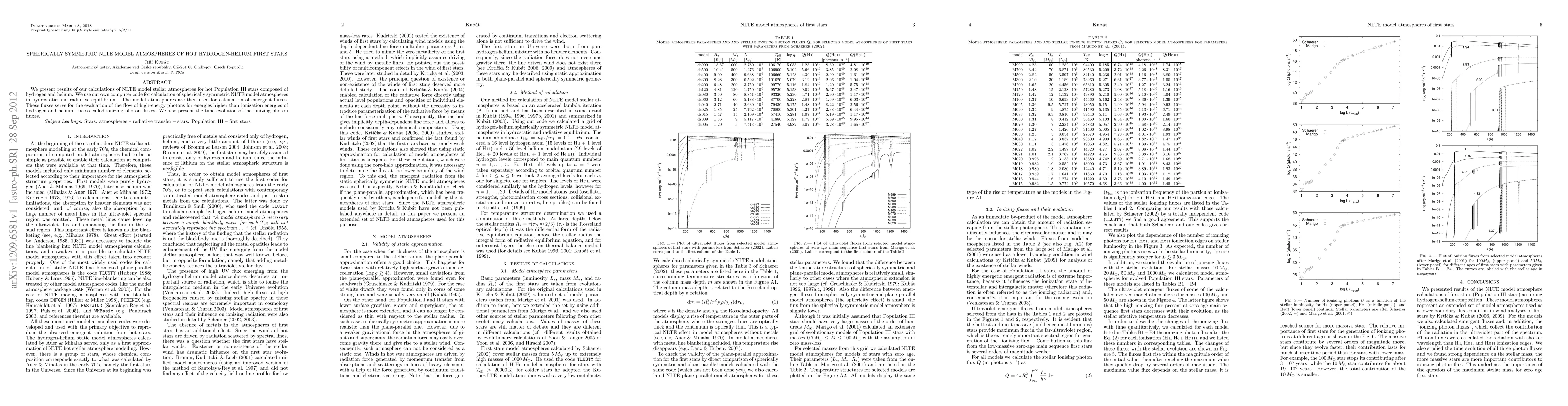 This paper presents NLTE model atmospheres for hot Population III stars, composed mainly of hydrogen and helium, calculated using a custom code. The study evaluates the emergent fluxes and the time evolution of ionizing photon fluxes, which are crucial for understanding high-energy photon production in the first stars.