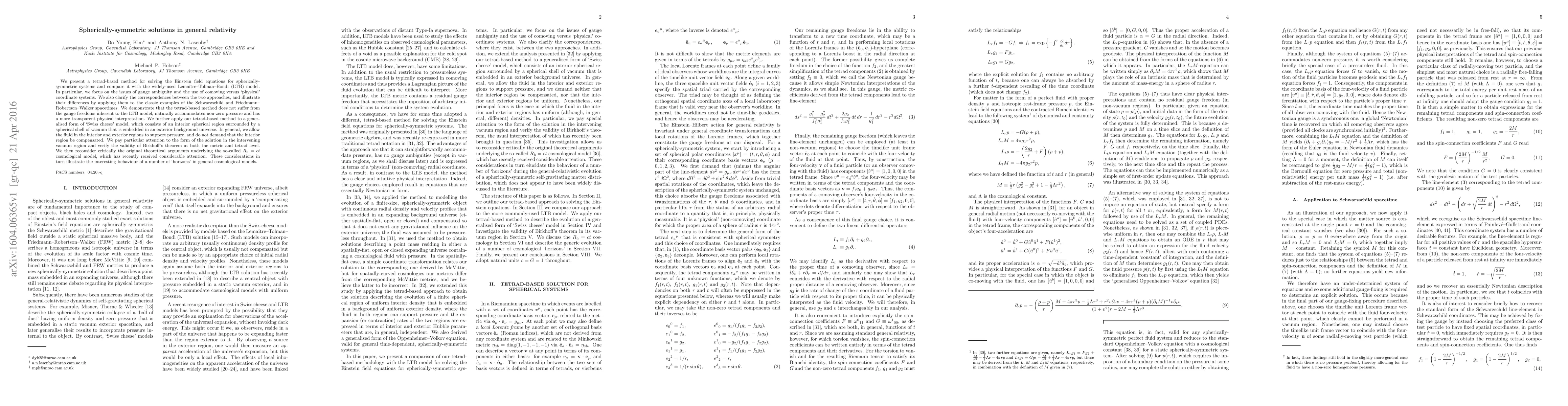 We present a tetrad-based method for solving the Einstein field equations for spherically-symmetric systems and compare it with the widely-used Lema\^itre-Tolman-Bondi (LTB) model. In particular, we focus on the issues of gauge ambiguity and the use of comoving versus 'physical' coordinate systems. We also clarify the correspondences between the two approaches, and illustrate their differences by applying them to the classic examples of the Schwarzschild and Friedmann-Robertson-Walker spacetimes. We demonstrate that the tetrad-based method does not suffer from the gauge freedoms inherent to the LTB model, naturally accommodates non-zero pressure and has a more transparent physical interpretation. We further apply our tetrad-based method to a generalised form of 'Swiss cheese' model, which consists of an interior spherical region surrounded by a spherical shell of vacuum that is embedded in an exterior background universe. In general, we allow the fluid in the interior and exterior regions to support pressure, and do not demand that the interior region be compensated. We pay particular attention to the form of the solution in the intervening vacuum region and verify the validity of Birkhoff's theorem at both the metric and tetrad level. We then reconsider critically the original theoretical arguments underlying the so-called $R_h = ct$ cosmological model, which has recently received considerable attention. These considerations in turn illustrate the interesting behaviour of a number of 'horizons' in general cosmological models.