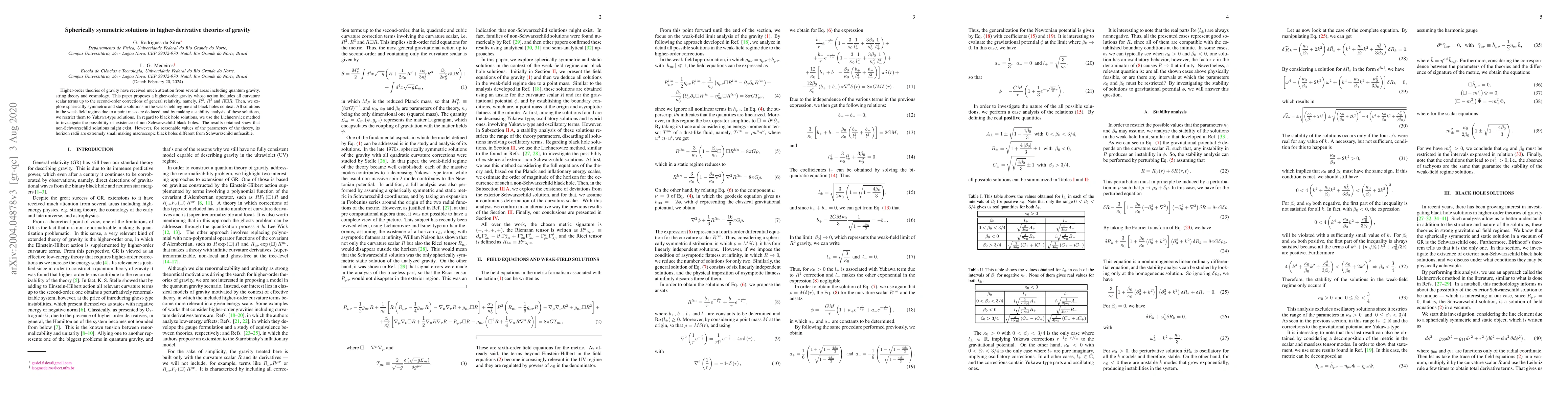 This paper explores higher-derivative gravity theories including $R^2$, $R^3$, and $R\square R$ terms, examining spherically symmetric and static solutions. Yukawa-type solutions in weak-field regimes and a potential for non-Schwarzschild black holes are found, though realistic parameters make such deviations negligible for macroscopic black holes.
