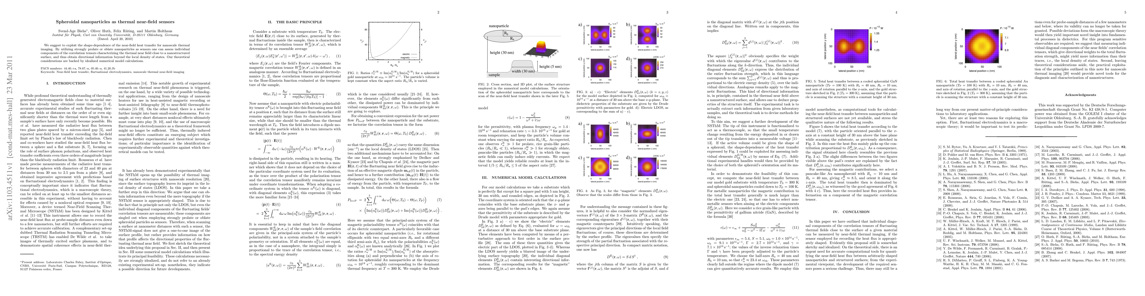 We suggest to exploit the shape-dependence of the near-field heat transfer for nanoscale thermal imaging. By utilizing strongly prolate or oblate nanoparticles as sensors one can assess individual components of the correlation tensors characterizing the thermal near field close to a nanostructured surface, and thus obtain directional information beyond the local density of states. Our theoretical considerations are backed by idealized numerical model calculations.