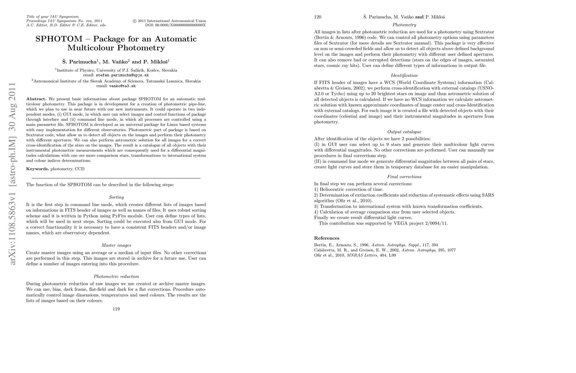 The research introduces SPHOTOM, a Linux-based, versatile photometry package with GUI and command-line modes. It automates multicolour photometry using Sextrator for object detection and photometry, astrometric solutions for accurate star cross-identification, and differential magnitude calculations with transformation to international standards and colour indices determination.