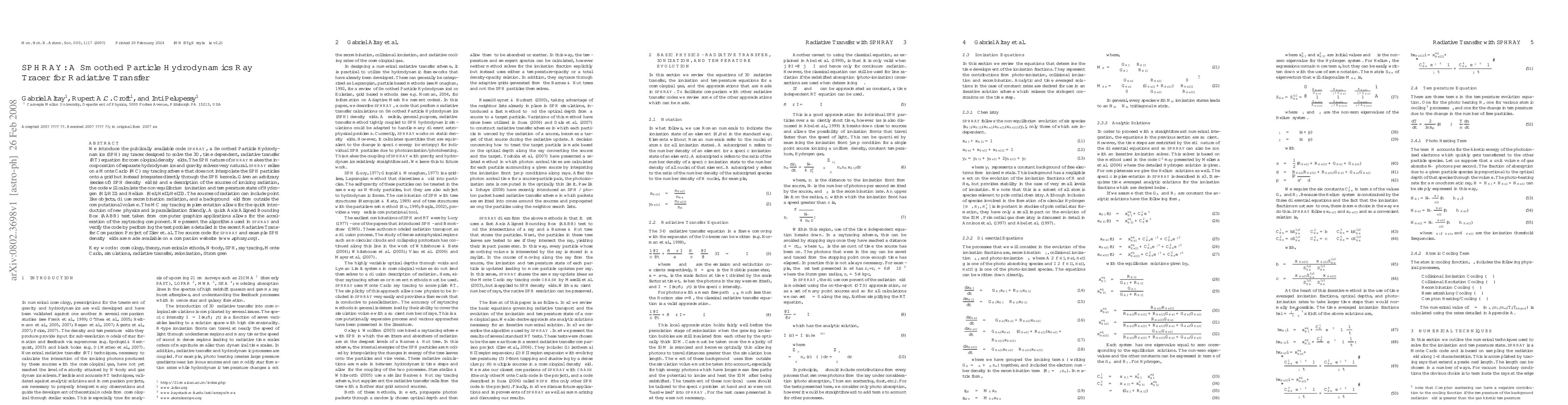 SPHRAY is a novel SPH-based ray tracer for solving 3D radiative transfer equations, integrating directly through SPH kernels without grid interpolation. It calculates non-equilibrium ionization states and temperatures for SPH particles, supporting various radiation sources and parallelization.