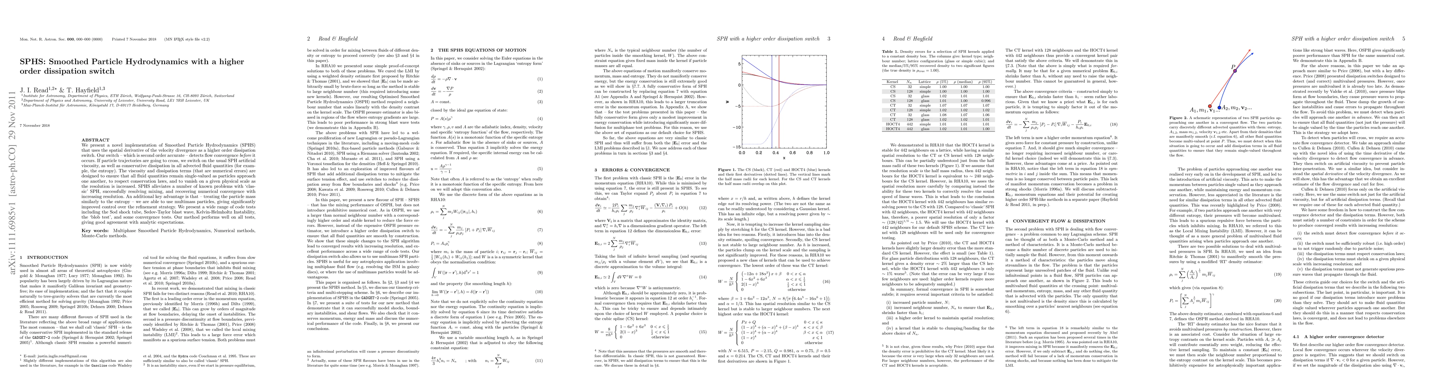 We present a novel implementation of Smoothed Particle Hydrodynamics (SPHS) that uses the spatial derivative of the velocity divergence as a higher order dissipation switch. Our switch -- which is second order accurate -- detects flow convergence before it occurs. If particle trajectories are going to cross, we switch on the usual SPH artificial viscosity, as well as conservative dissipation in all advected fluid quantities (for example, the entropy). The viscosity and dissipation terms (that are numerical errors) are designed to ensure that all fluid quantities remain single-valued as particles approach one another, to respect conservation laws, and to vanish on a given physical scale as the resolution is increased. SPHS alleviates a number of known problems with `classic' SPH, successfully resolving mixing, and recovering numerical convergence with increasing resolution. An additional key advantage is that -- treating the particle mass similarly to the entropy -- we are able to use multimass particles, giving significantly improved control over the refinement strategy. We present a wide range of code tests including the Sod shock tube, Sedov-Taylor blast wave, Kelvin-Helmholtz Instability, the `blob test', and some convergence tests. Our method performs well on all tests, giving good agreement with analytic expectations.