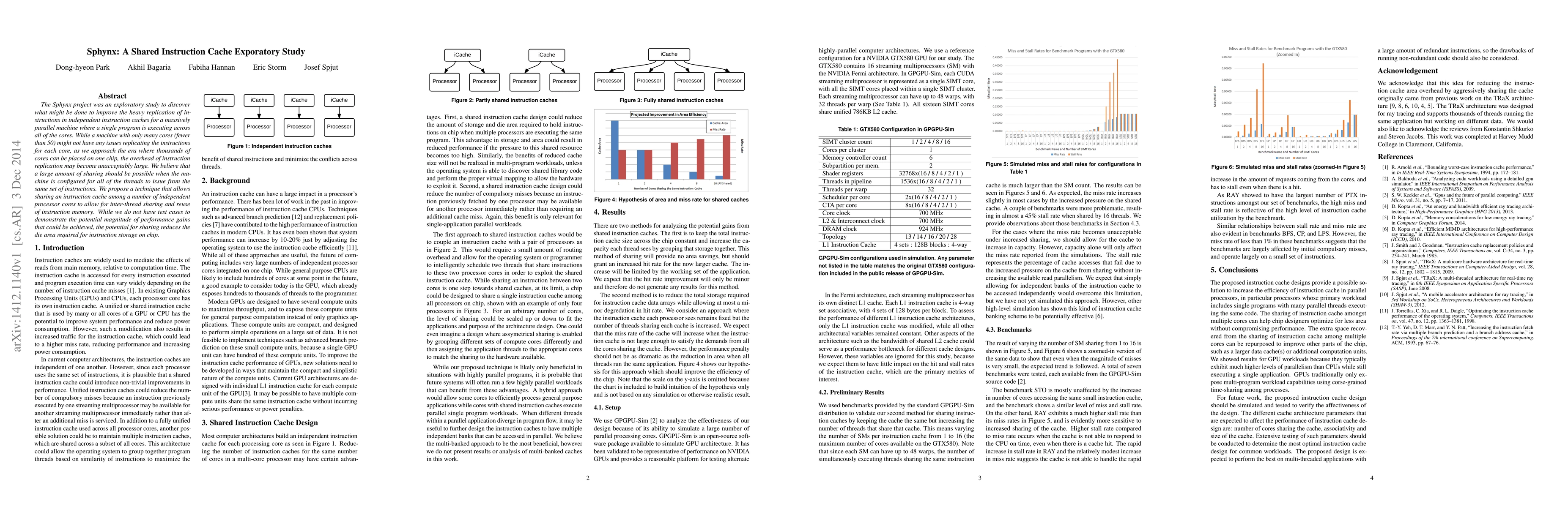 The Sphynx project was an exploratory study to discover what might be done to improve the heavy replication of in- structions in independent instruction caches for a massively parallel machine where a single program is executing across all of the cores. While a machine with only many cores (fewer than 50) might not have any issues replicating the instructions for each core, as we approach the era where thousands of cores can be placed on one chip, the overhead of instruction replication may become unacceptably large. We believe that a large amount of sharing should be possible when the ma- chine is configured for all of the threads to issue from the same set of instructions. We propose a technique that allows sharing an instruction cache among a number of independent processor cores to allow for inter-thread sharing and reuse of instruction memory. While we do not have test cases to demonstrate the potential magnitude of performance gains that could be achieved, the potential for sharing reduces the die area required for instruction storage on chip.