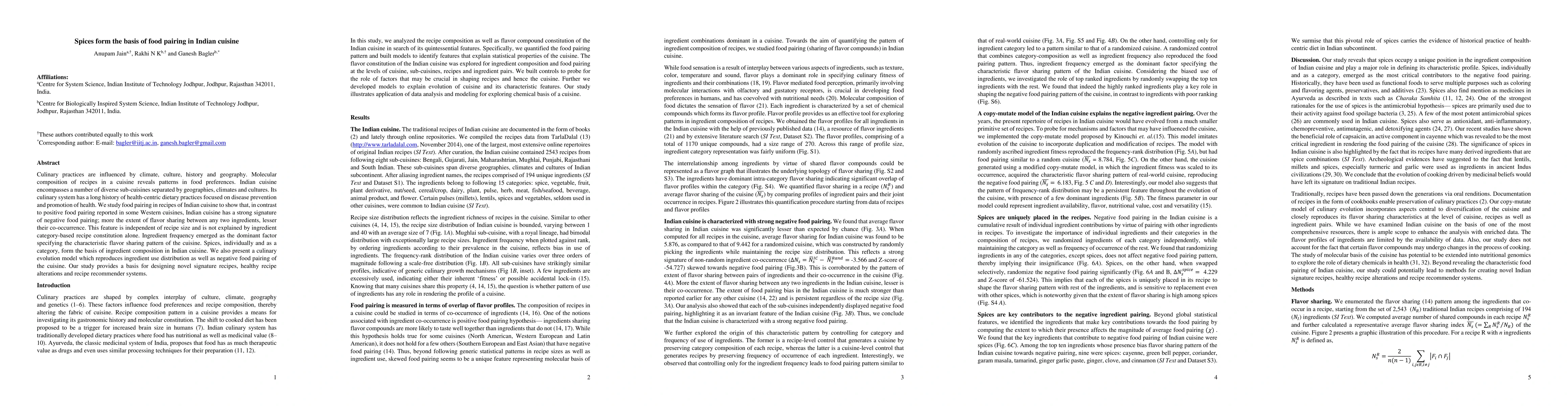 This paper explores Indian cuisine's unique food pairing patterns, revealing a strong negative correlation between flavor-sharing ingredients, driven by spice usage. It proposes a culinary evolution model that explains these patterns and suggests applications for recipe innovation and health-focused alterations.