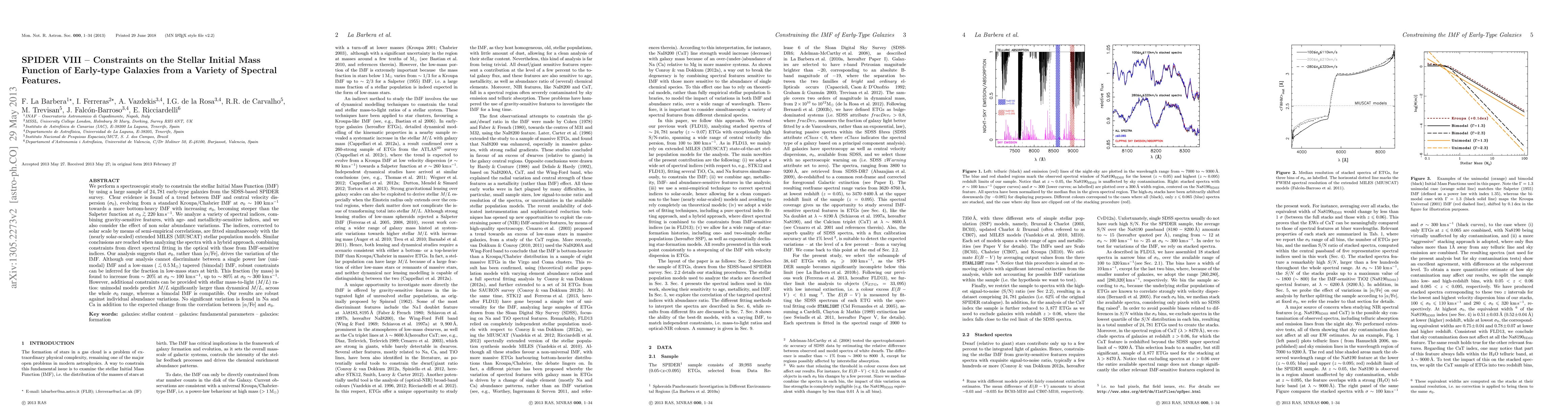 We perform a spectroscopic study to constrain the stellar Initial Mass Function (IMF) by using a large sample of 24,781 early-type galaxies from the SDSS-based SPIDER survey. Clear evidence is found of a trend between IMF and central velocity dispersion, sigma0, evolving from a standard Kroupa/Chabrier IMF at 100km/s towards a more bottom-heavy IMF with increasing sigma0, becoming steeper than the Salpeter function at sigma0>220km/s. We analyze a variety of spectral indices, corrected to solar scale by means of semi-empirical correlations, and fitted simultaneously with extended MILES (MIUSCAT) stellar population models. Our analysis suggests that sigma0, rather than [alpha/Fe], drives the IMF variation. Although our analysis cannot discriminate between a single power-law (unimodal) and a low-mass (<0.5MSun) tapered (bimodal) IMF, we can robustly constrain the fraction in low-mass stars at birth, that is found to increase from 20% at sigma0~100km/s, up to 80% at sigma0~300km/s. Additional constraints can be provided with stellar mass-to-light (M/L) ratios: unimodal models predict M/L significantly larger than dynamical M/L, across the whole sigma0 range, whereas a bimodal IMF is compatible. Our results are robust against individual abundance variations. No significant variation is found in Na and Ca in addition to the expected change from the correlation between [alpha/Fe] and sigma0. [Abridged]