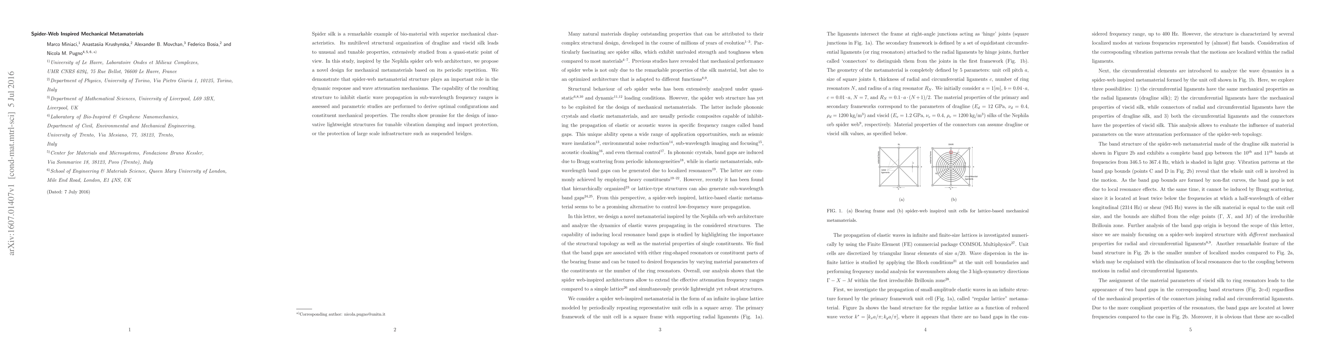 This study designs mechanical metamaterials inspired by the architecture of spider webs, demonstrating their dynamic response and wave attenuation capabilities. The research highlights the potential for these structures to effectively dampen vibrations and protect large-scale infrastructure, offering innovative solutions for lightweight, tunable vibration damping and impact protection.