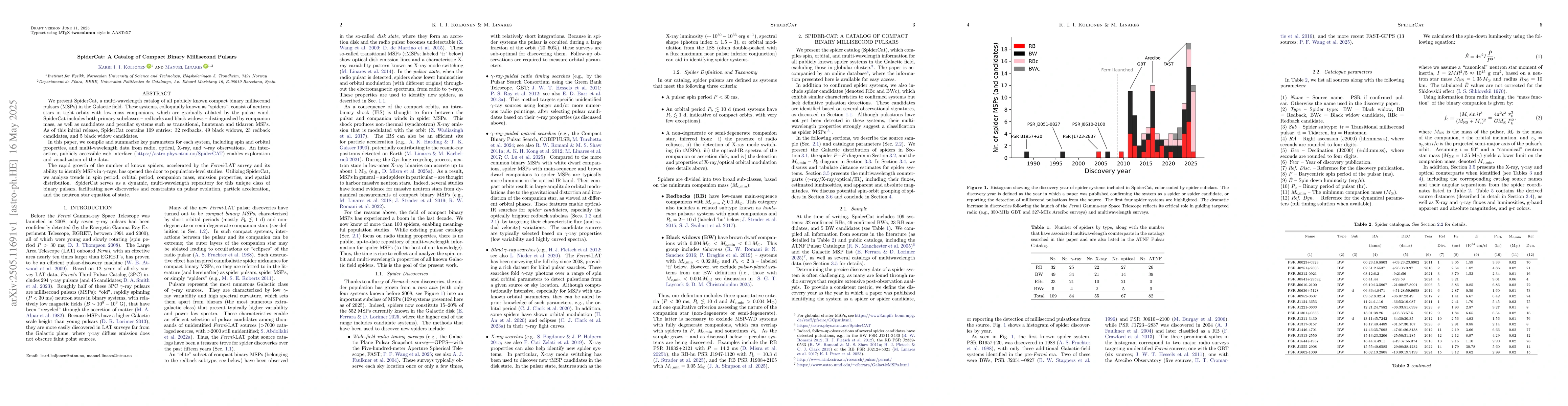SpiderCat is the first comprehensive, publicly accessible catalog of its kind, enabling population-level studies of these unique binary pulsar systems.