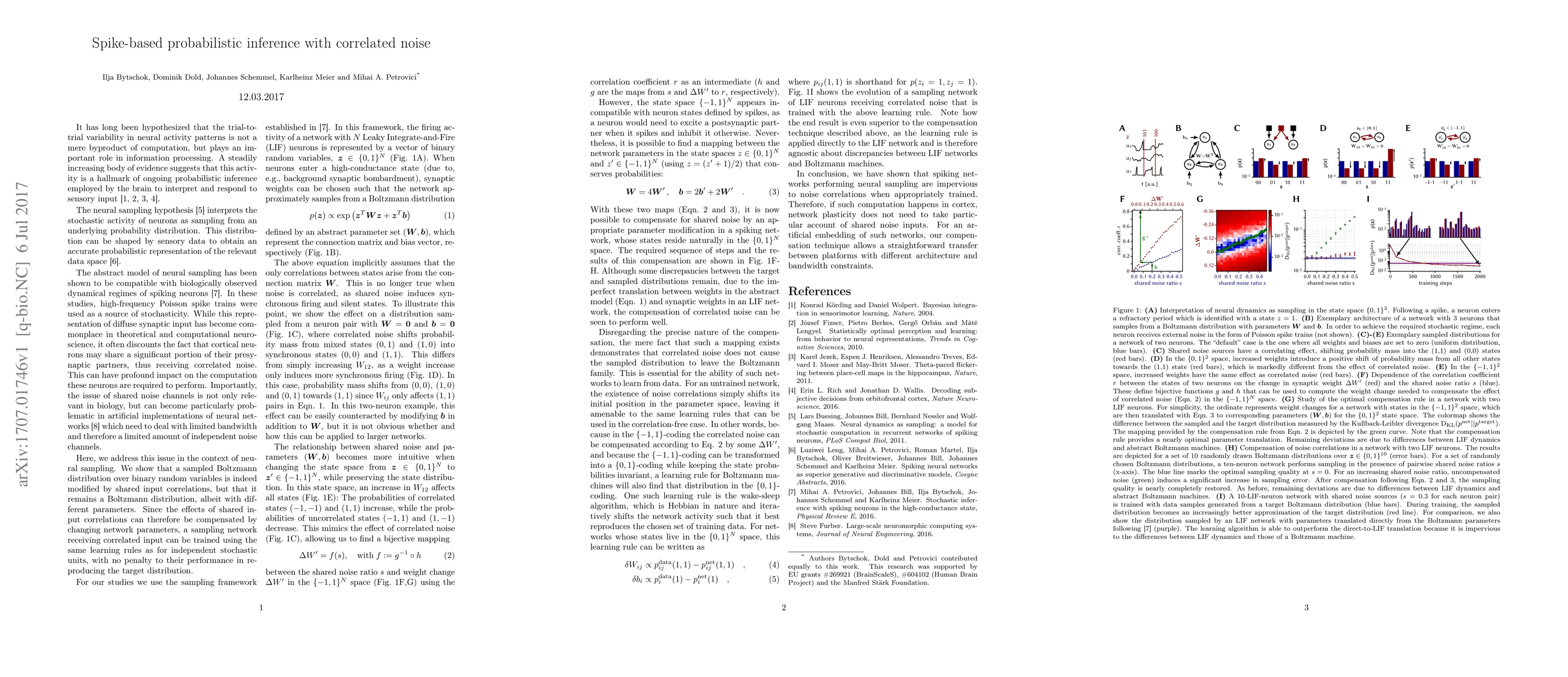 A steadily increasing body of evidence suggests that the brain performs probabilistic inference to interpret and respond to sensory input and that trial-to-trial variability in neural activity plays an important role. The neural sampling hypothesis interprets stochastic neural activity as sampling from an underlying probability distribution and has been shown to be compatible with biologically observed firing patterns. In many studies, uncorrelated noise is used as a source of stochasticity, discounting the fact that cortical neurons may share a significant portion of their presynaptic partners, which impacts their computation. This is relevant in biology and for implementations of neural networks where bandwidth constraints limit the amount of independent noise. When receiving correlated noise, the resulting correlations cannot be directly countered by changes in synaptic weights $W$. We show that this is contingent on the chosen coding: when changing the state space from $z\in\{0,1\}$ to $z'\in\{-1,1\}$, correlated noise has the exact same effect as changes in $W'$. The translation of the problem to the $\{-1,1\}$ space allows to find a weight configuration that compensates for the induced correlations. For an artificial embedding of sampling networks, this allows a straightforward transfer between platforms with different bandwidth constraints. The existence of the mapping is important for learning. Since in the $\{-1,1\}$-coding the correlated noise can be compensated by parameter changes and the probability distribution can be kept invariant when changing the coding, the distribution will be found in the $\{0,1\}$-coding as well during learning, as demonstrated in simulations. Conclusively, sampling spiking networks are impervious to noise correlations when trained. If such computation happens in cortex, network plasticity does not need to take account of shared noise inputs.