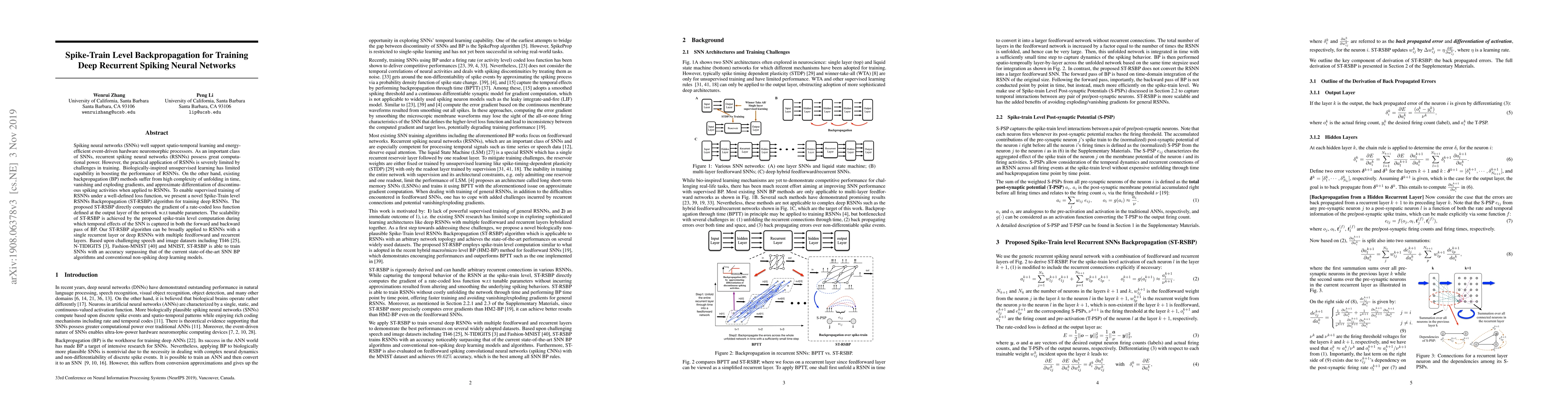 The paper presents a novel Spike-Train level Backpropagation (ST-RSBP) algorithm for training deep recurrent spiking neural networks (RSNNs), addressing challenges like gradient vanishing and high complexity. ST-RSBP achieves scalable training by computing gradients at the spike-train level, outperforming current state-of-the-art SNN backpropagation methods and conventional deep learning models on speech and image datasets.