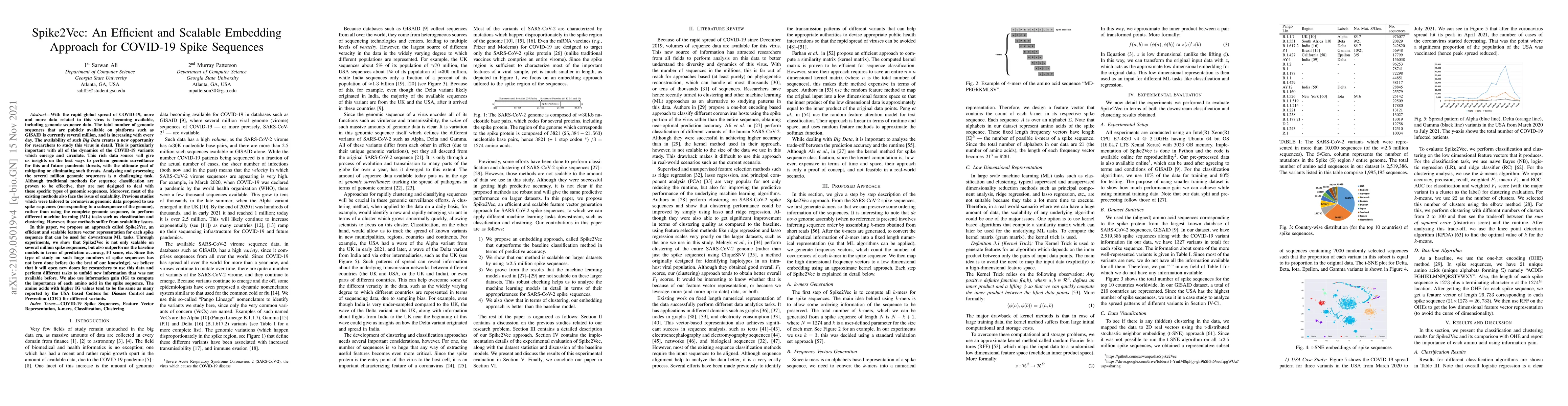 A new approach called Spike2Vec is proposed to efficiently process large COVID-19 genomic sequences, outperforming traditional methods in scalability and prediction accuracy.