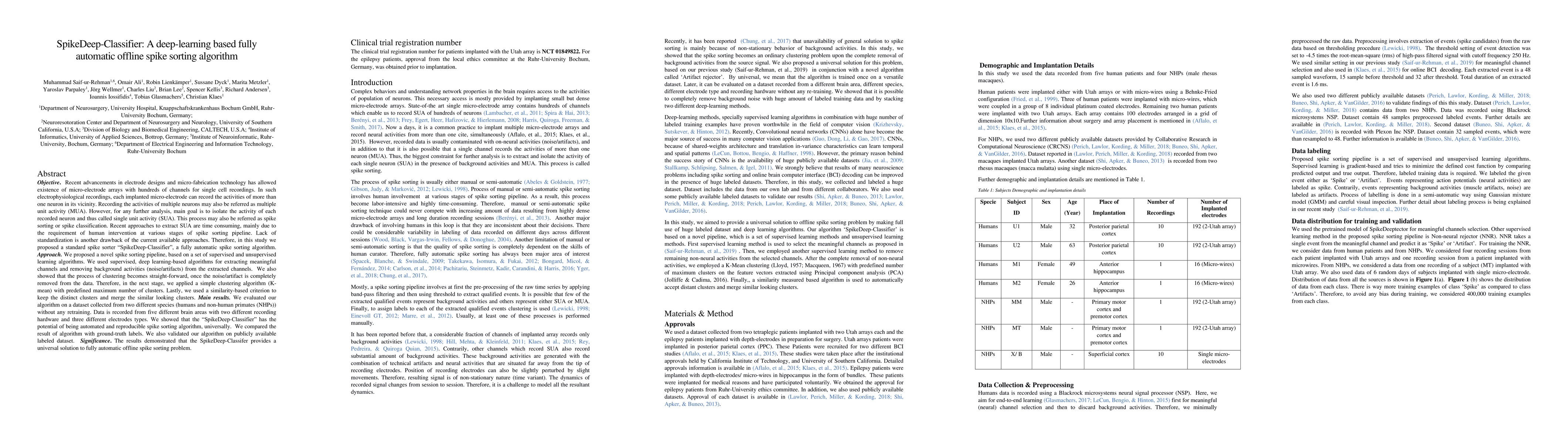 SpikeDeep-Classifier is a fully automatic deep-learning based spike sorting algorithm designed to isolate single-unit activity from multiple unit recordings. The proposed method uses supervised deep learning for noise removal and unsupervised clustering, validated on datasets from humans and non-human primates.