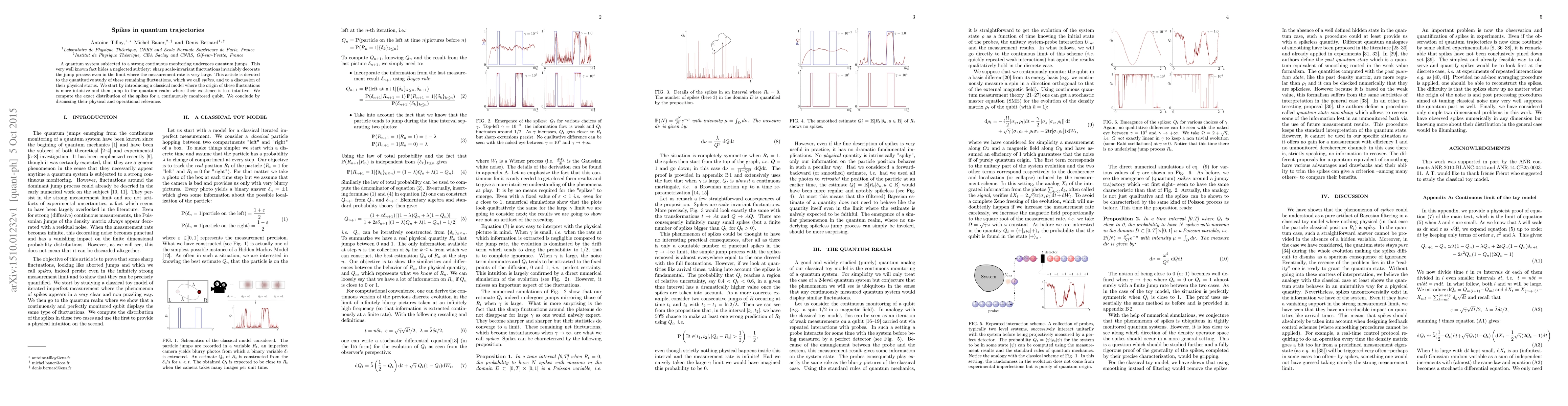 This paper investigates the persistent scale-invariant fluctuations, termed spikes, that occur during quantum jumps in a strongly monitored quantum system, even at high measurement rates. The authors provide a detailed analysis of these spikes, starting with a classical model and concluding with a quantum qubit example, to explore their physical and operational implications.