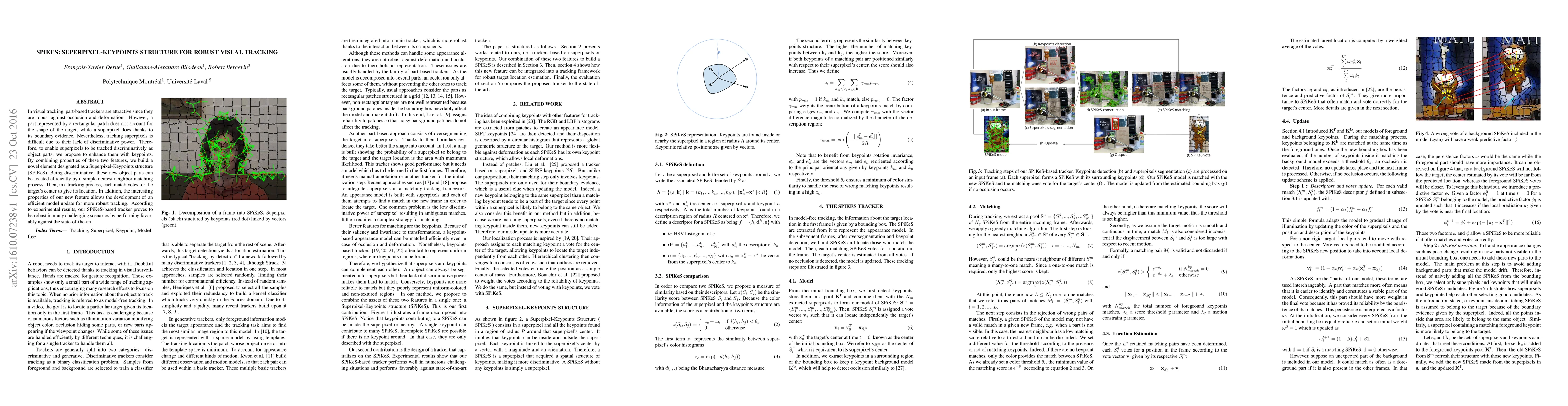 The paper proposes SPiKeS, a Superpixel-Keypoints structure for robust visual tracking, combining superpixels and keypoints to enhance discriminative power and enable efficient tracking. Experimental results show that the SPiKeS-based tracker outperforms state-of-the-art methods in challenging scenarios.