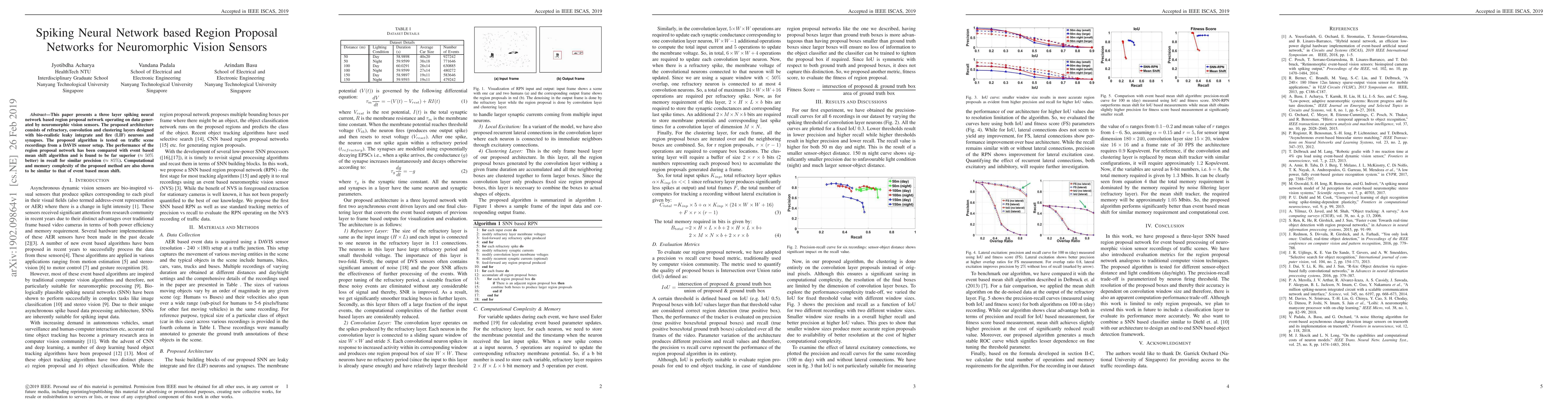 This paper introduces a spiking neural network-based region proposal network for neuromorphic vision sensors, featuring refractory, convolution, and clustering layers with bio-realistic neurons. The proposed method outperforms an event-based mean shift algorithm by ~50% in recall for similar precision, with comparable computational and memory efficiency.