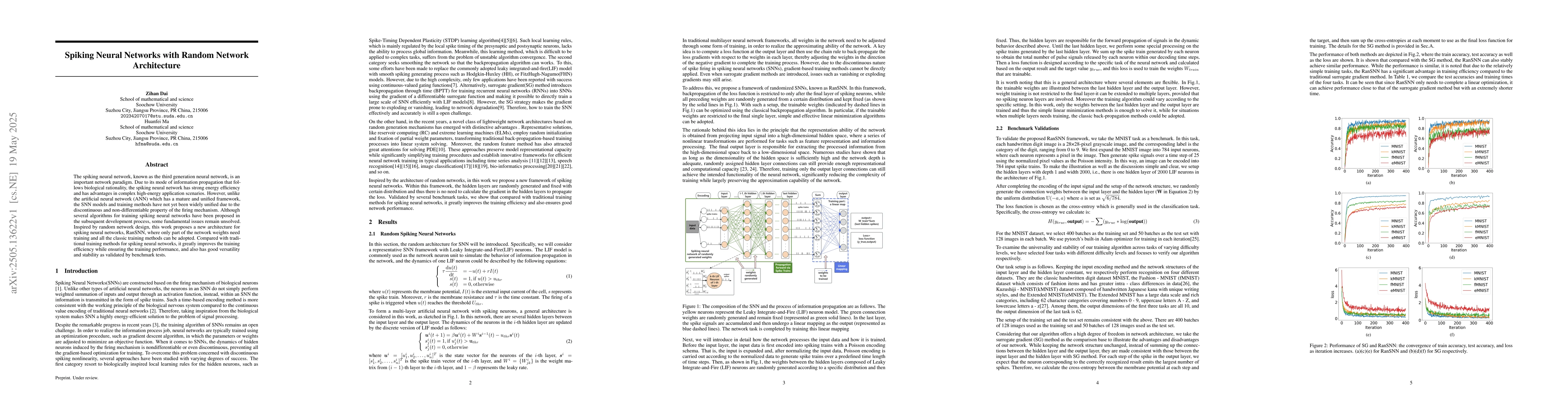 A new spiking neural network architecture called RanSNN improves training efficiency while maintaining performance and versatility, using only part of the network weights that need to be trained.