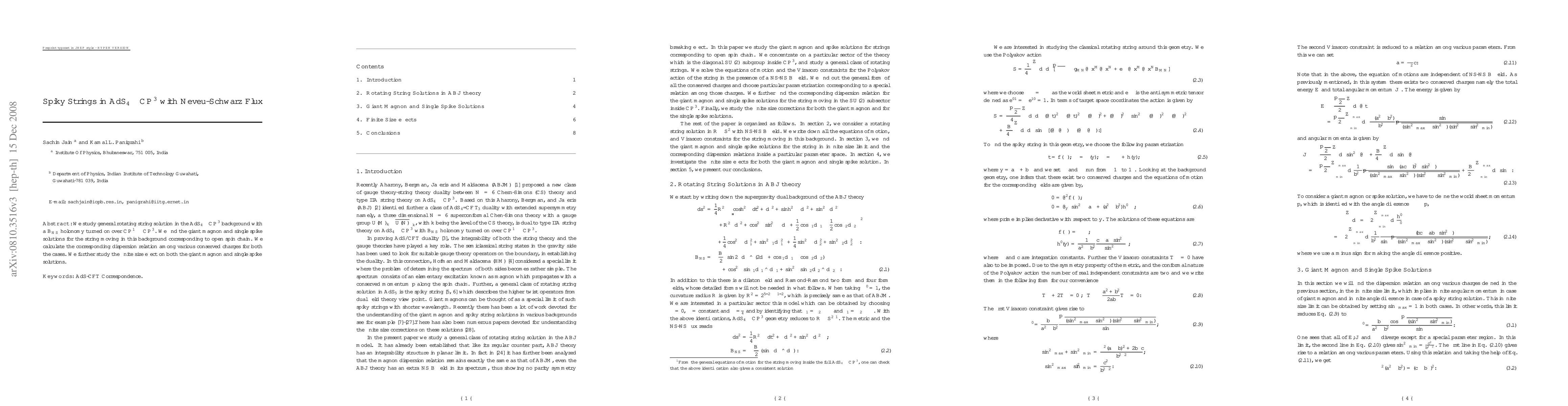 This paper investigates rotating string solutions in an AdS(4) X CP**3 background with Neveu-Schwarz flux, focusing on giant magnon and single spike solutions, and calculates their dispersion relations. It also examines finite size effects on these solutions.