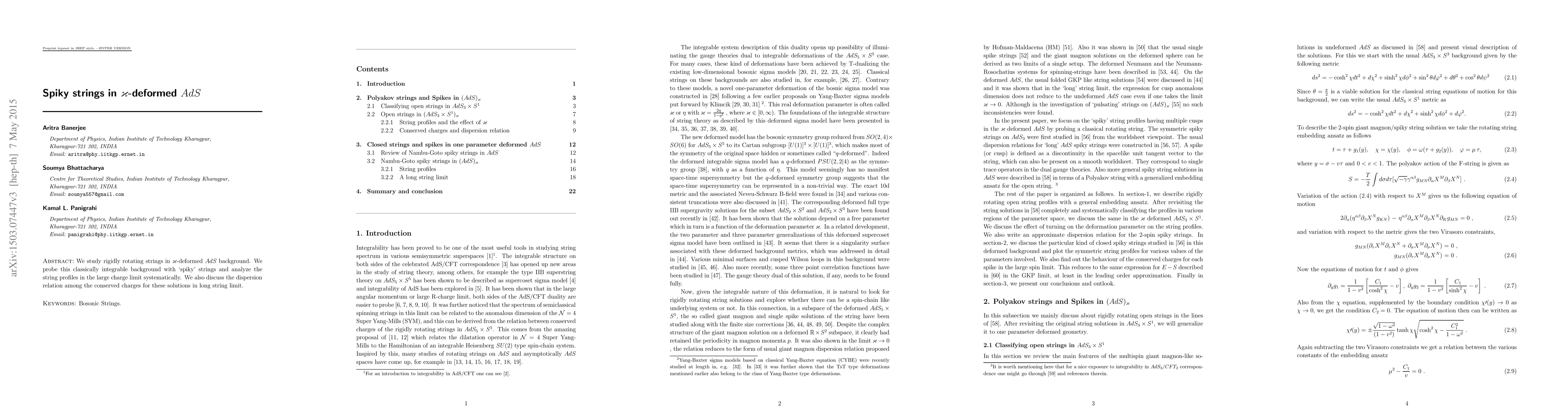This paper investigates rigidly rotating strings in a $\varkappa$-deformed AdS background, focusing on 'spiky' string profiles in the large charge limit. It also examines the dispersion relation among conserved charges for these solutions in the long string limit.