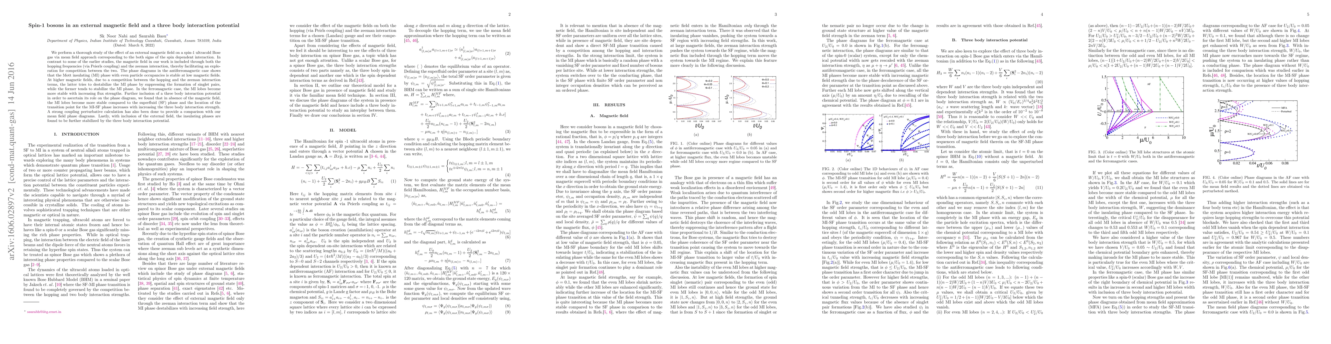 Researchers studied how an external magnetic field affects a type of gas called a Bose gas, finding that it can stabilize certain phases, such as a Mott insulating phase, depending on the strength of the field and interactions between particles.