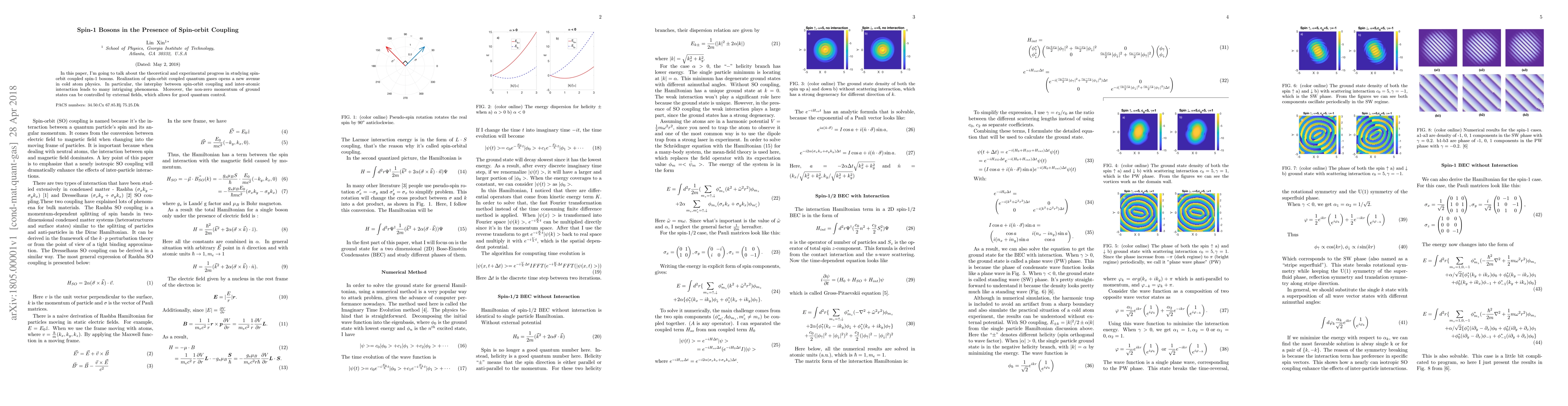 Summary: This paper explores theoretical and experimental advancements in spin-orbit coupled spin-1 bosons, highlighting the novel phenomena arising from the interplay between spin-orbit coupling and inter-atomic interactions, and the potential for external field control of ground states' momentum.