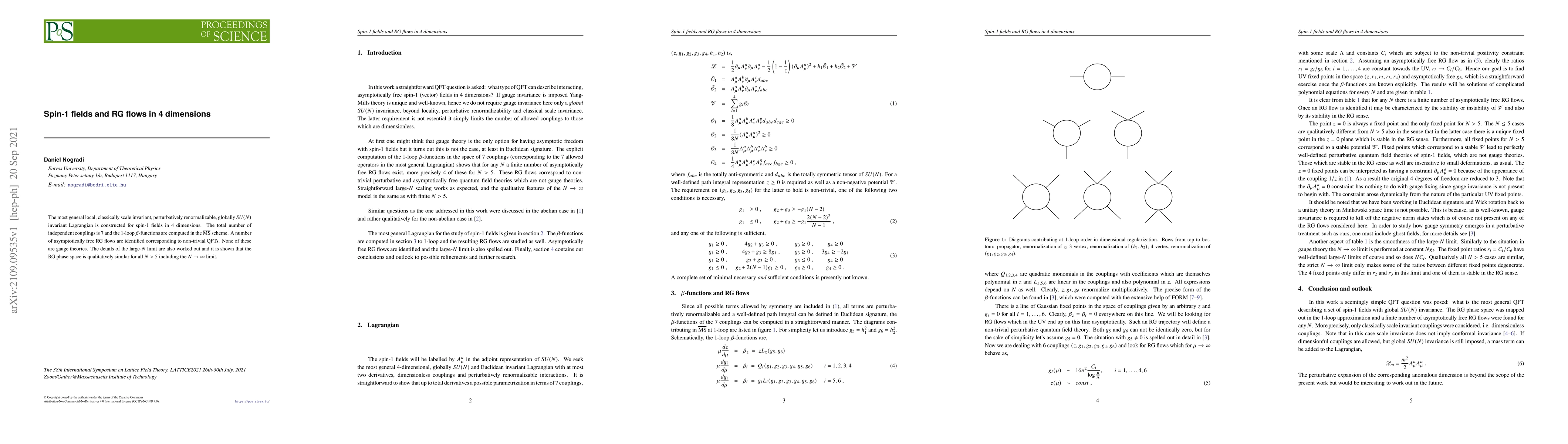 This paper constructs a scale-invariant Lagrangian for spin-1 fields in 4D, identifying 7 independent couplings and computing 1-loop beta functions. It reveals several asymptotically free renormalization group flows for non-trivial quantum field theories, none of which are gauge theories, and shows similar RG phase space for large $N$.