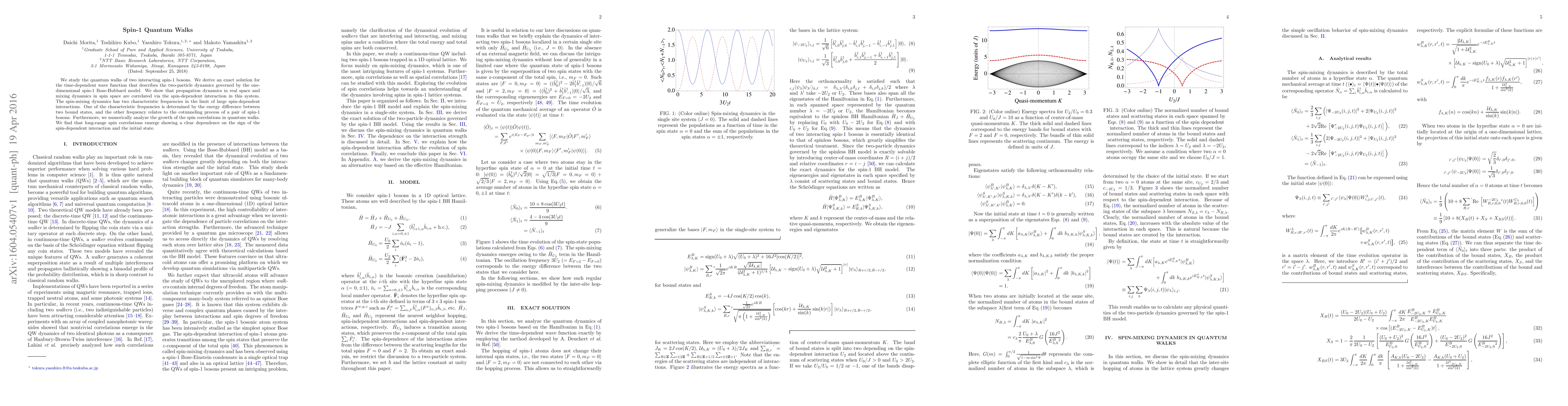 Researchers studied quantum walks of interacting spin-1 bosons, finding that long-range spin correlations emerge in some cases, depending on the interaction strength and initial state.