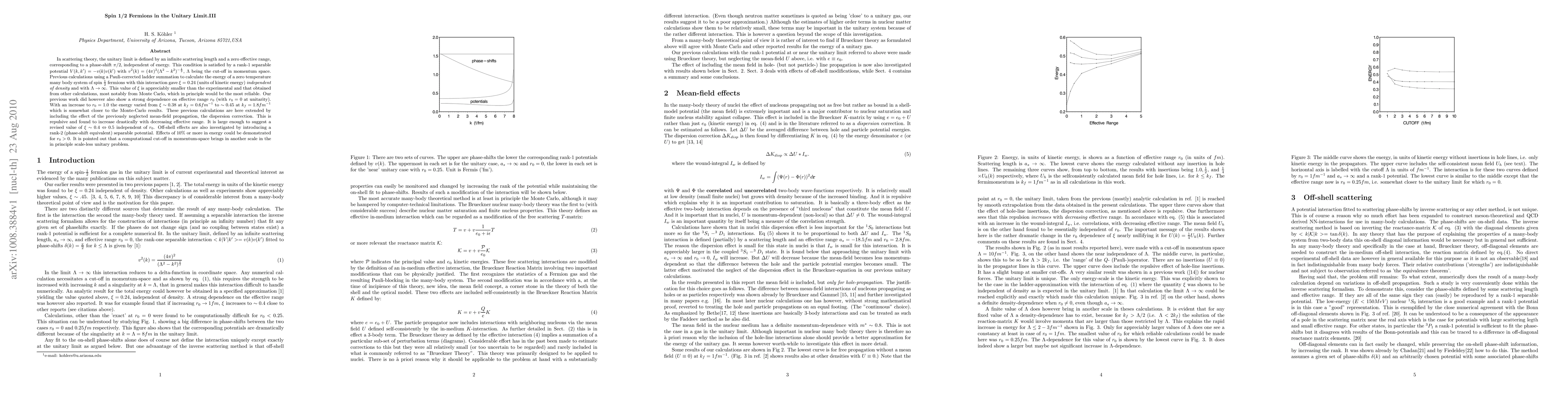 Researchers extended their previous study on spin 1/2 fermions in a unitary limit by including mean-field propagation dispersion correction, finding a revised value of energy with a range of 0.4 to 0.5 independent of density.