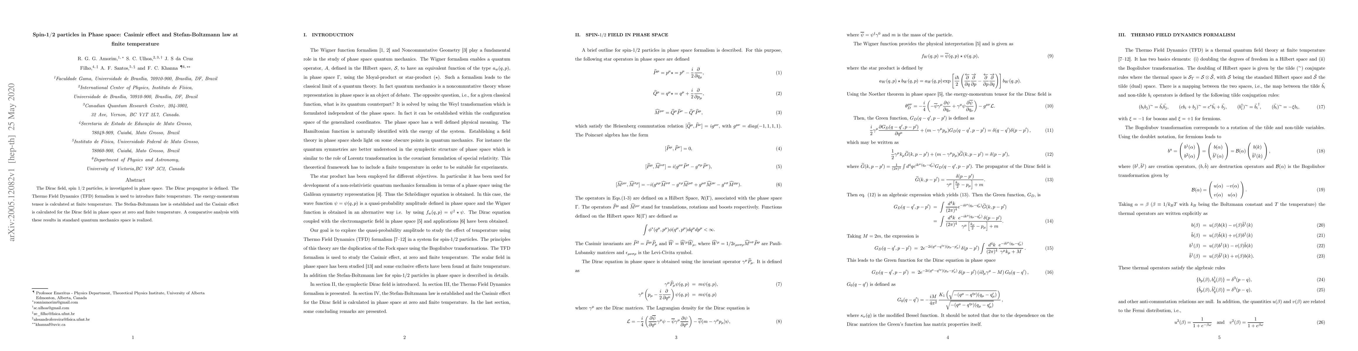 This paper investigates spin-1/2 particles using the Dirac field in phase space, employing Thermo Field Dynamics to introduce finite temperature. It establishes the Stefan-Boltzmann law and calculates the Casimir effect for the Dirac field at both zero and finite temperatures, comparing these results with standard quantum mechanics.