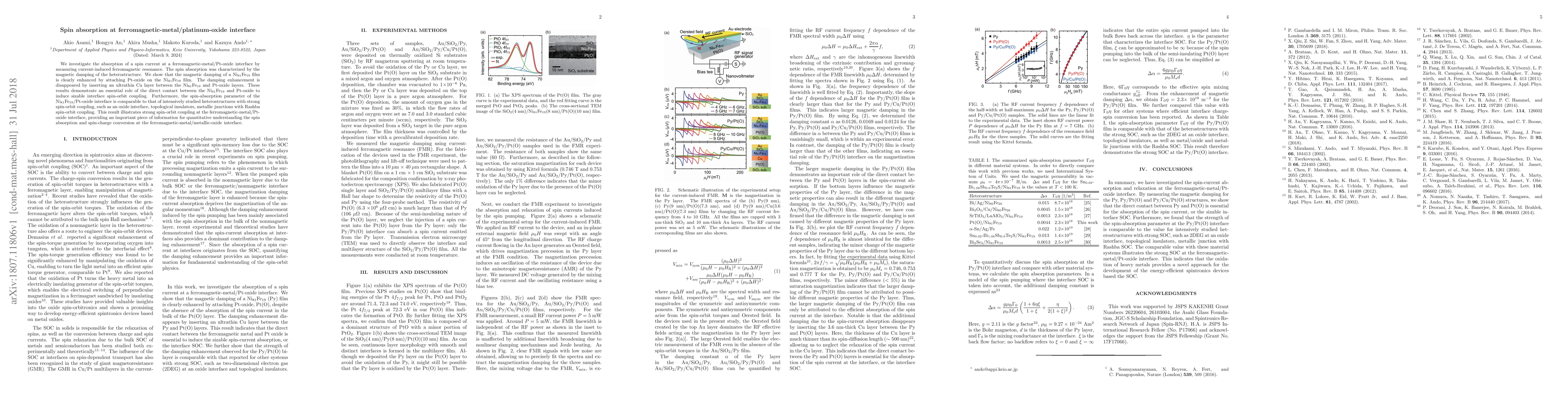 This study investigates the spin current absorption at a ferromagnetic-metal/platinum-oxide interface, showing significant magnetic damping enhancement due to direct contact, which is disrupted by an ultrathin Cu layer, indicating strong interface spin-orbit coupling and comparable spin-absorption parameters to other well-studied heterostructures.