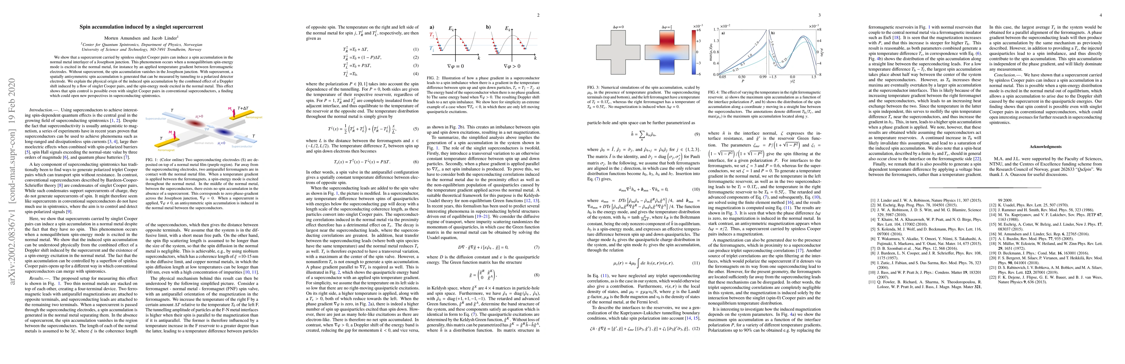 This paper demonstrates that a supercurrent from spinless singlet Cooper pairs can generate a spin accumulation in the normal metal of a Josephson junction, particularly when a nonequilibrium spin-energy mode is excited. This effect, explained by a Doppler shift and spin-energy mode interaction, suggests potential for spin control in superconducting spintronics.