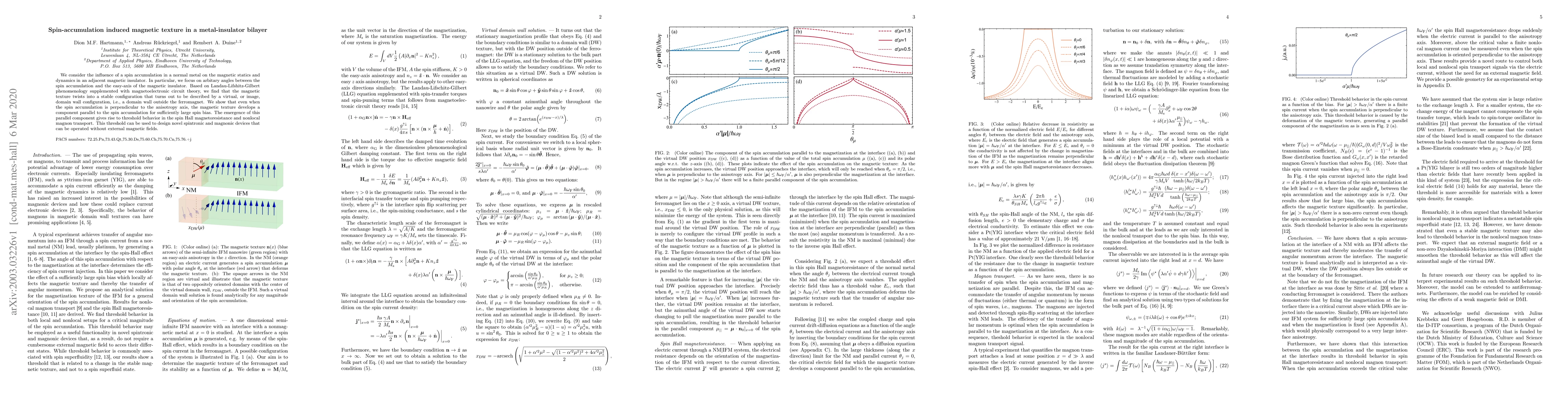 We consider the influence of a spin accumulation in a normal metal on the magnetic statics and dynamics in an adjacent magnetic insulator. In particular, we focus on arbitary angles between the spin accumulation and the easy-axis of the magnetic insulator. Based on Landau-Lifshitz-Gilbert phenomenology supplemented with magnetoelectronic circuit theory, we find that the magnetic texture twists into a stable configuration that turns out to be described by a virtual, or image, domain wall configuration, i.e., a domain wall outside the ferromagnet. We show that even when the spin accumulation is perpendicular to the anisotropy axis, the magnetic texture develops a component parallel to the spin accumulation for sufficiently large spin bias. The emergence of this parallel component gives rise to threshold behavior in the spin Hall magnetoresistance and nonlocal magnon transport. This threshold can be used to design novel spintronic and magnonic devices that can be operated without external magnetic fields.