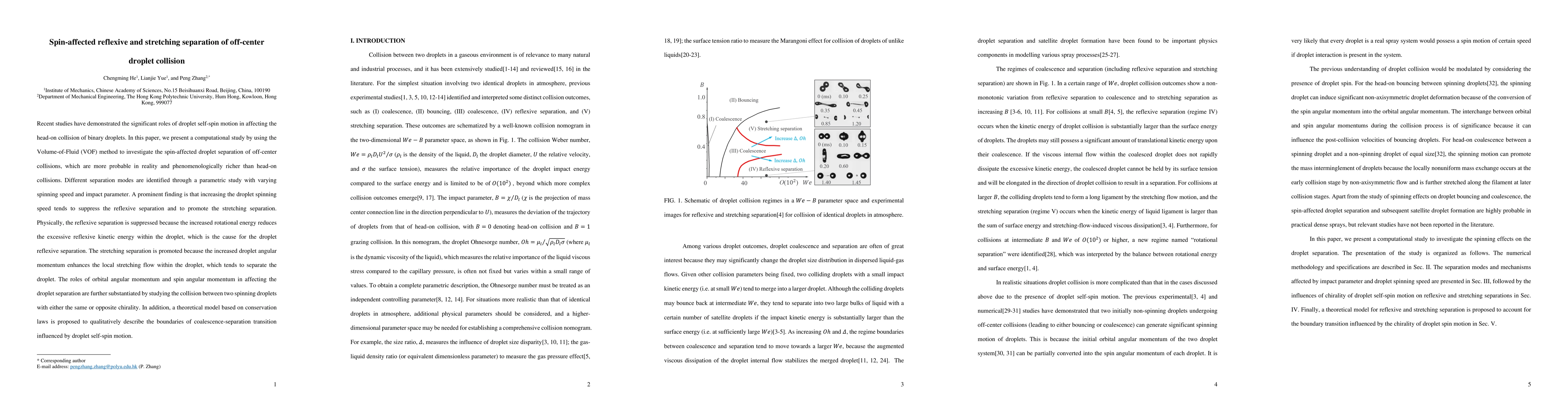 A numerical simulation study was conducted to investigate droplet collision outcomes in a gaseous medium.