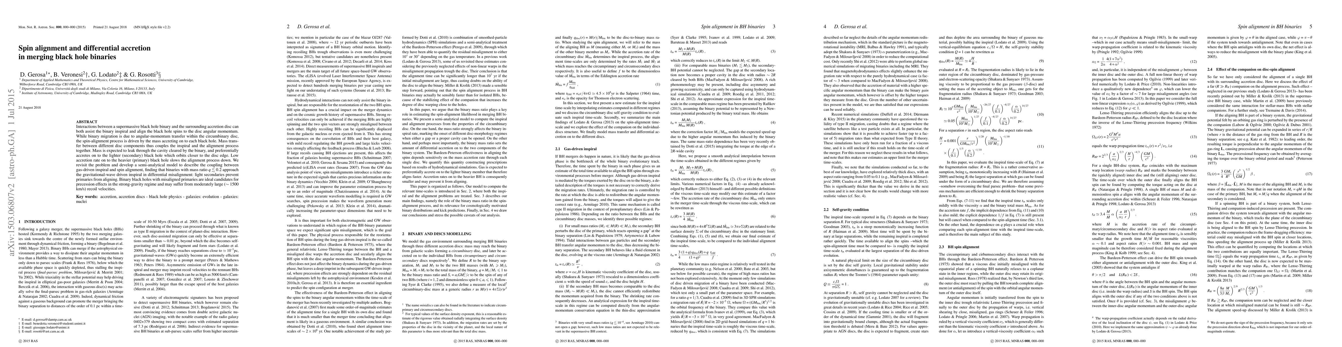 This paper explores how spin alignment and differential accretion in merging black hole binaries affect their inspiral and gravitational wave signatures. The study finds that lighter secondaries preferentially accrete mass, hindering spin alignment in binaries with low mass ratios, leading to potential precession effects and significant recoil velocities.