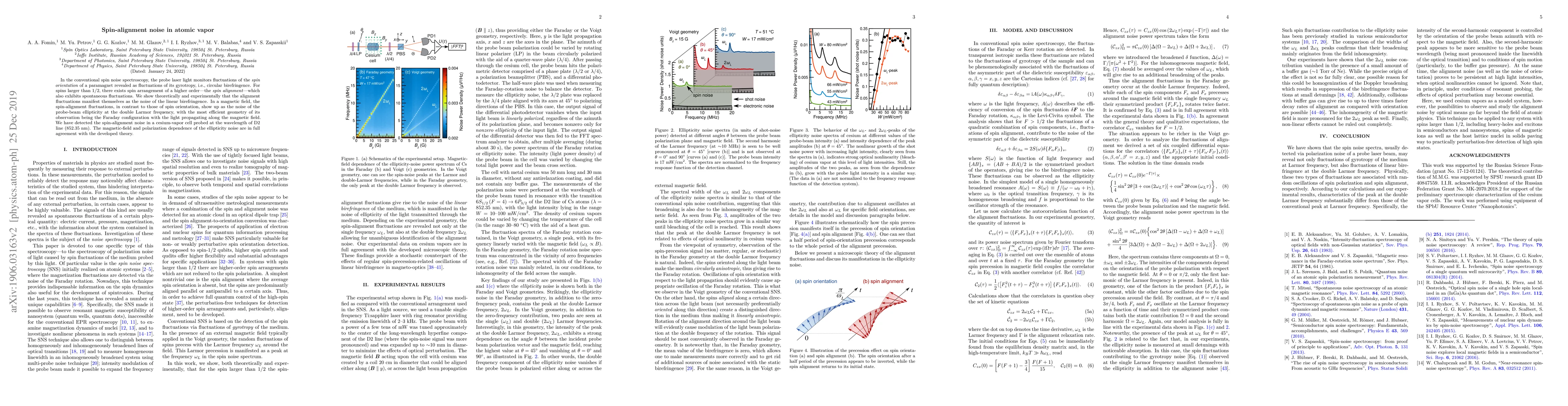 This paper investigates spin-alignment noise in atomic vapor, demonstrating both theoretically and experimentally that spin alignment fluctuations can be observed as linear birefringence noise. The study reveals that in a magnetic field, these fluctuations manifest as probe-beam ellipticity noise at the double Larmor frequency, most effectively observed in the Faraday configuration.