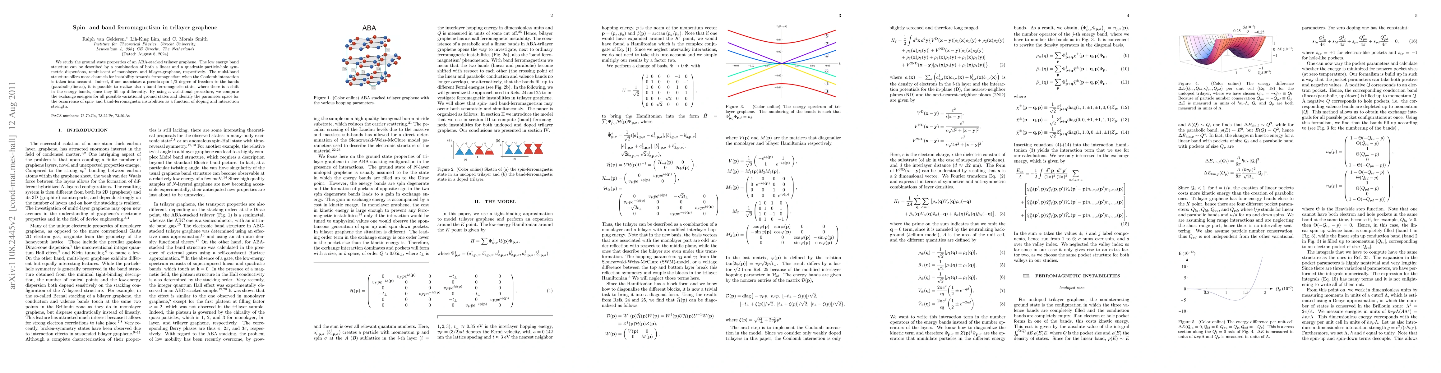 Researchers studied trilayer graphene for spin- and band-ferromagnetism, finding that it can exhibit both phenomena due to its unique multi-band structure, which allows for more channels of instability.
